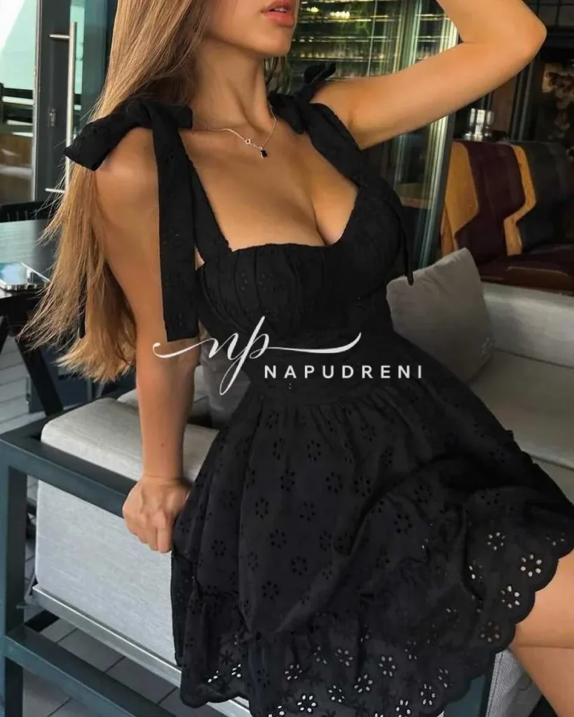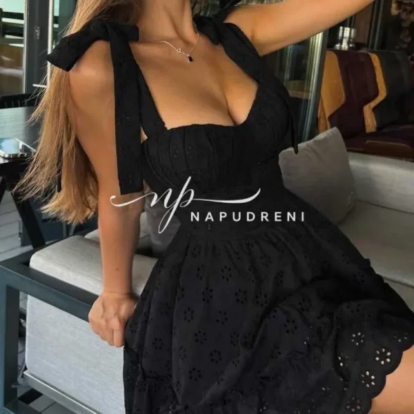 Рокля “ROSEMARRY“ с бродерия в черен цвят – код BL9719