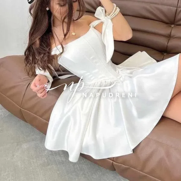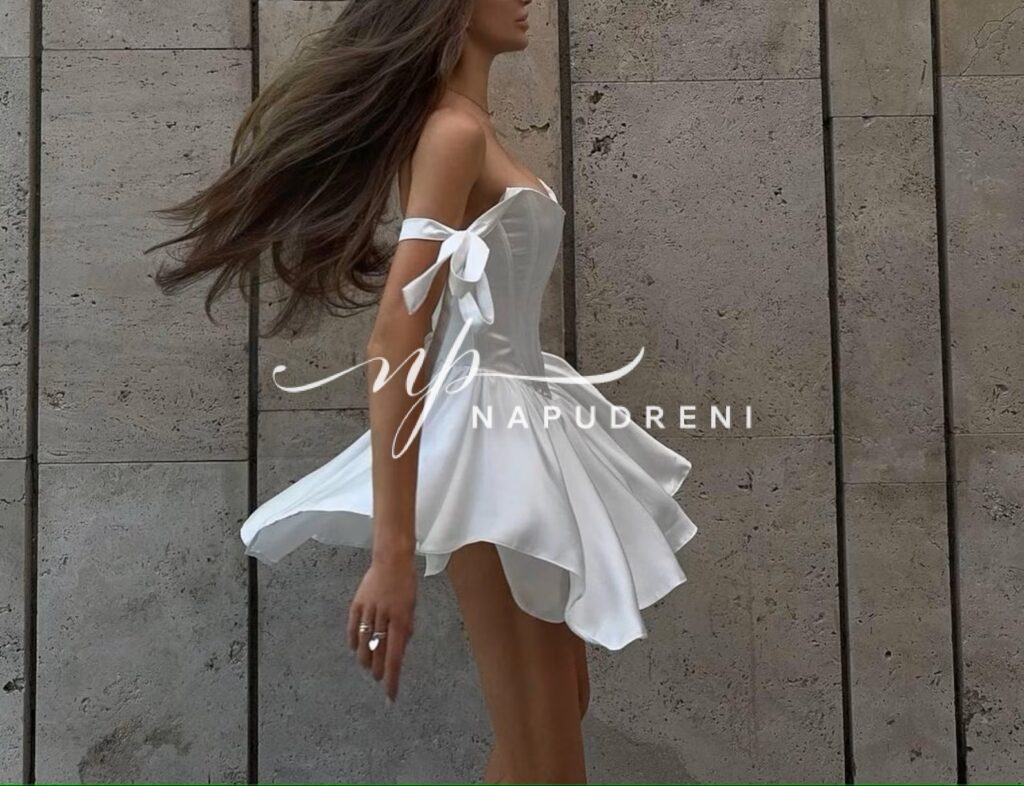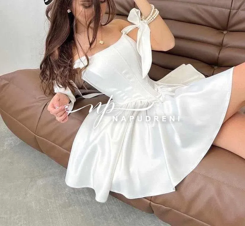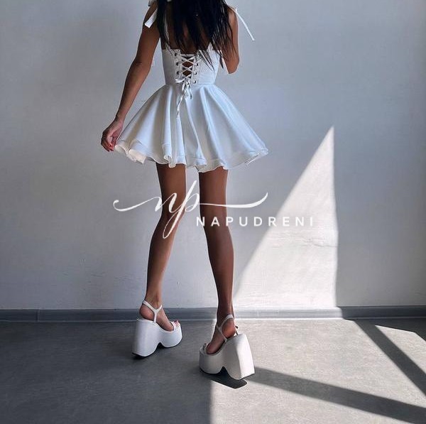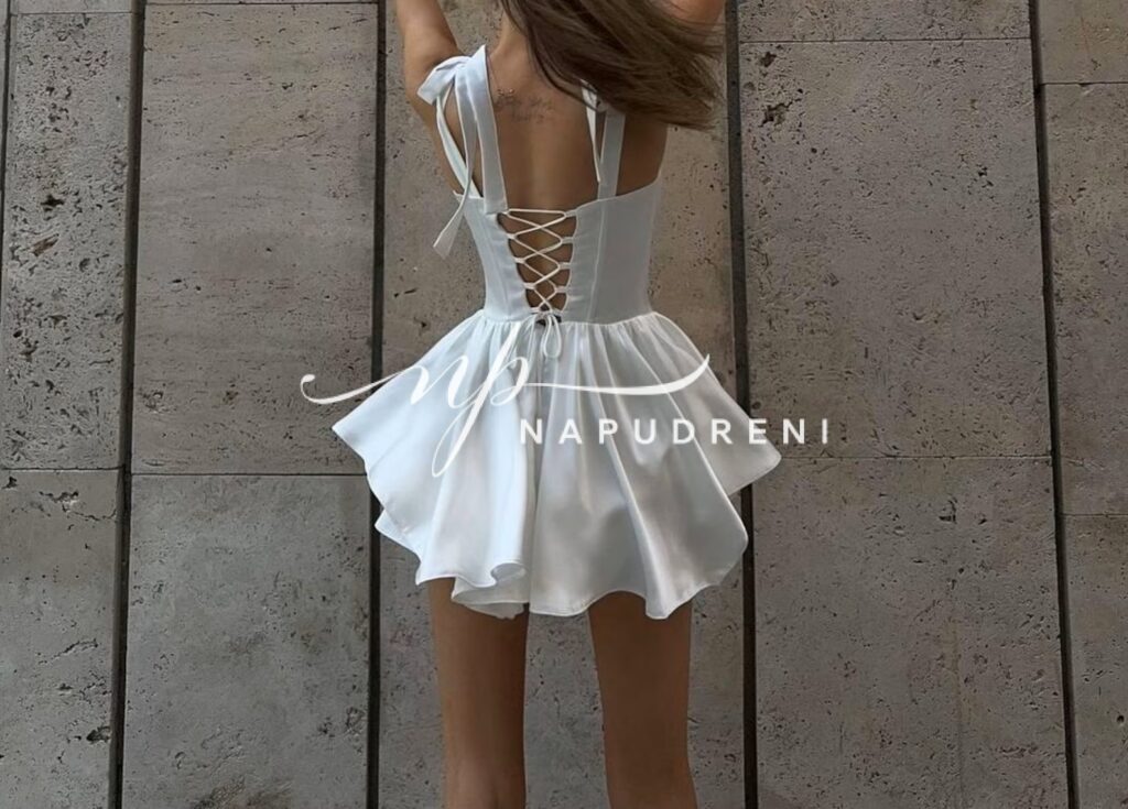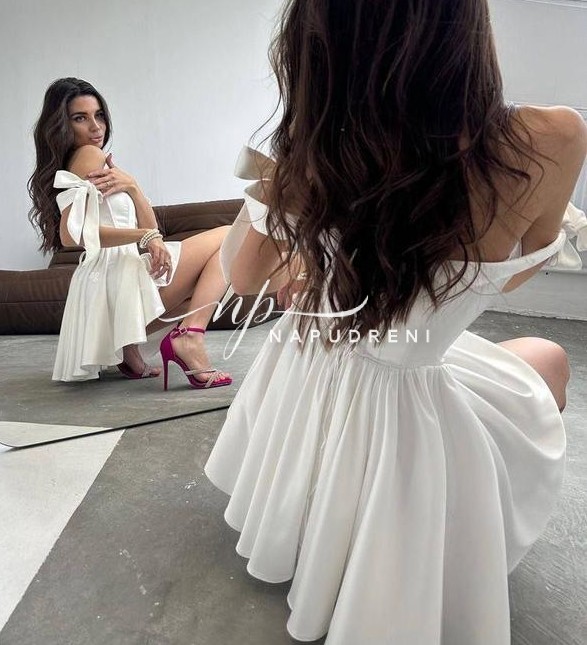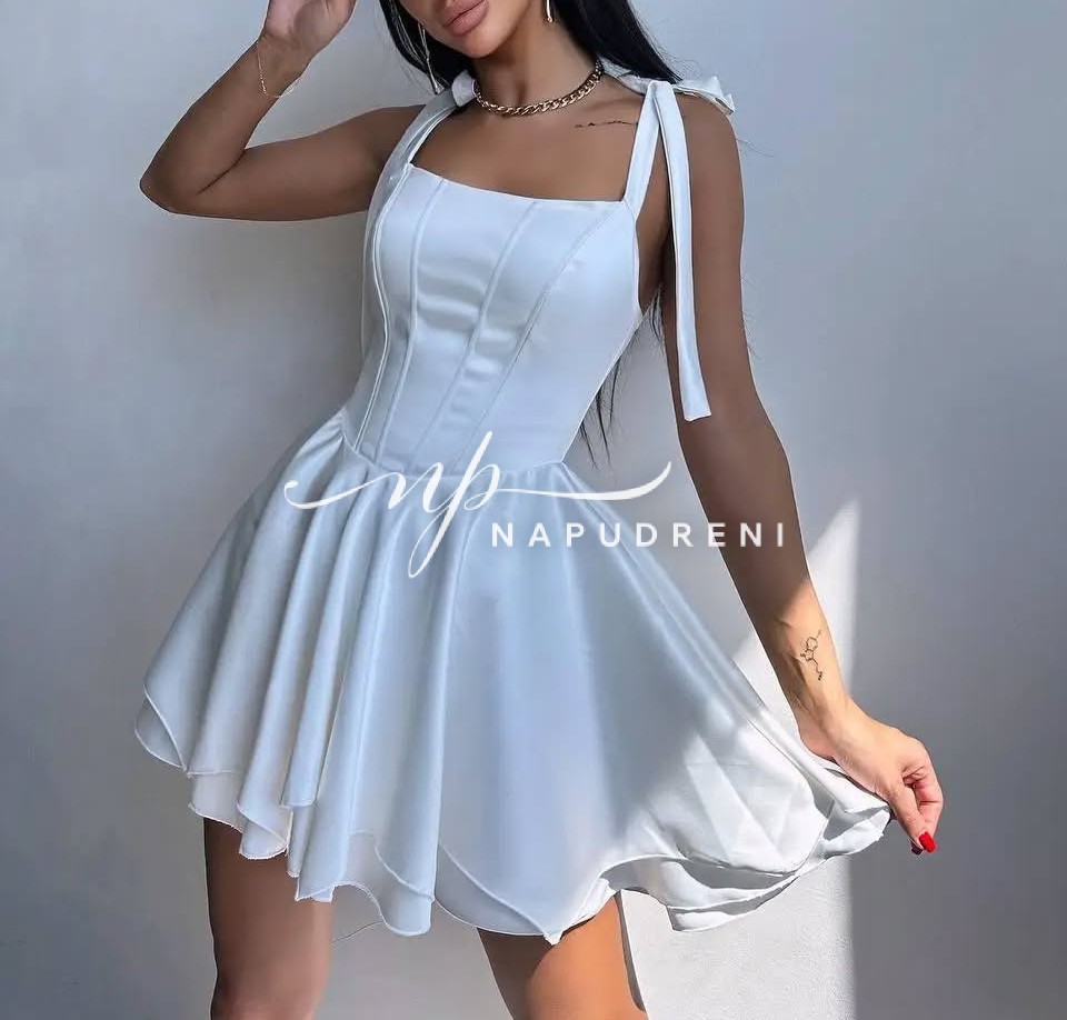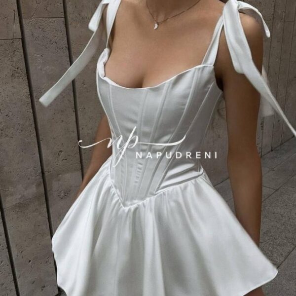 Рокля с корсет и панделки “ONYX“ в бял цвят – код BL9494