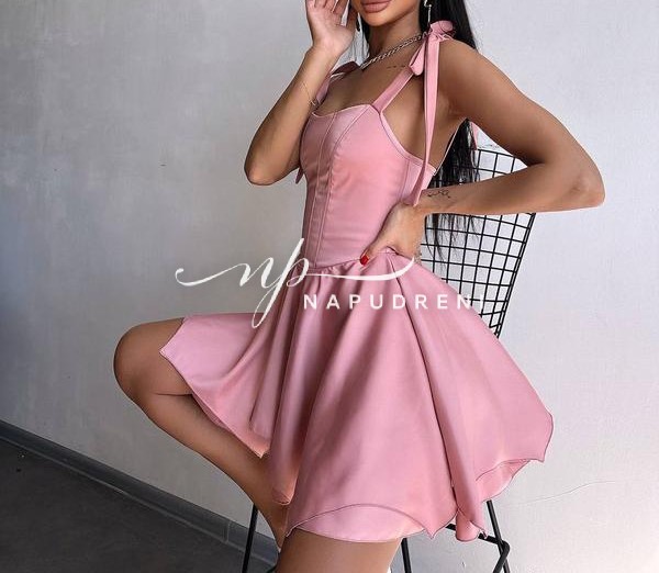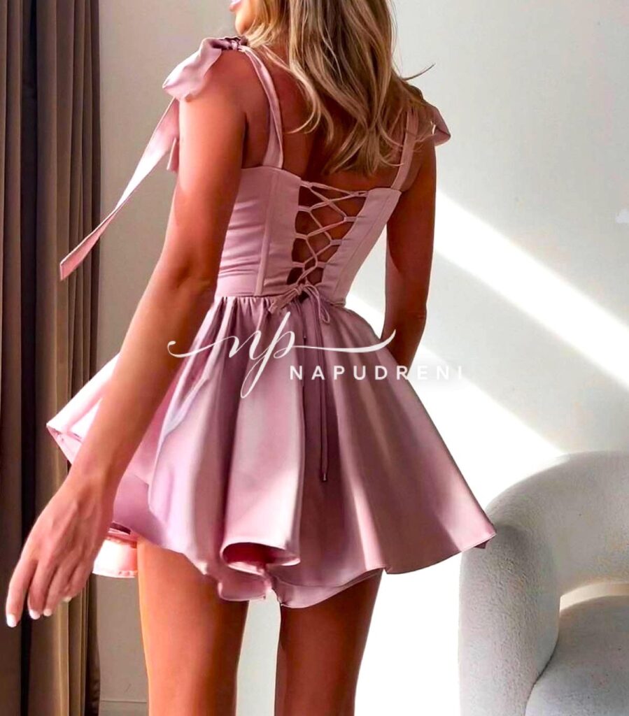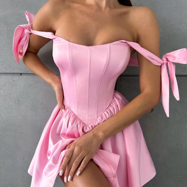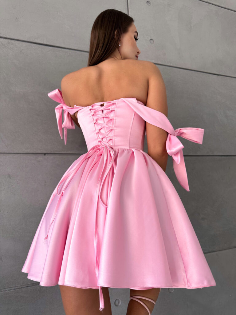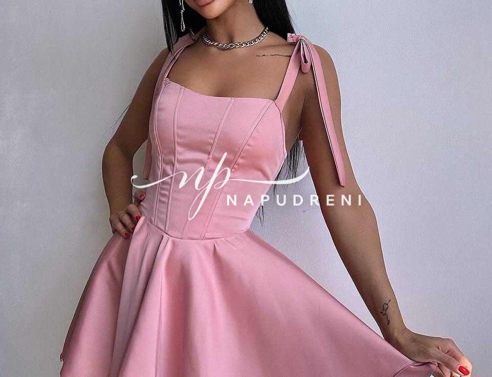 Рокля с корсет и панделки “ONYX“ в розов цвят – код BL9497