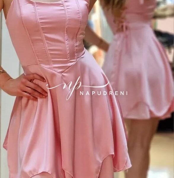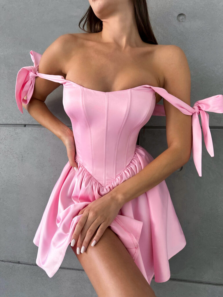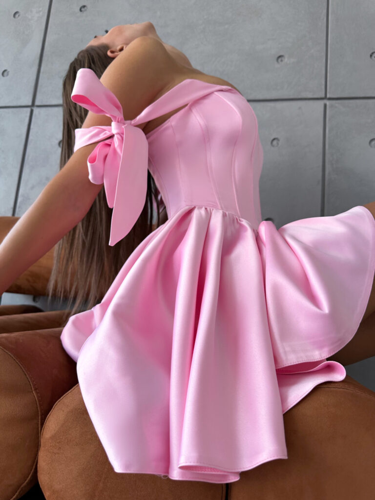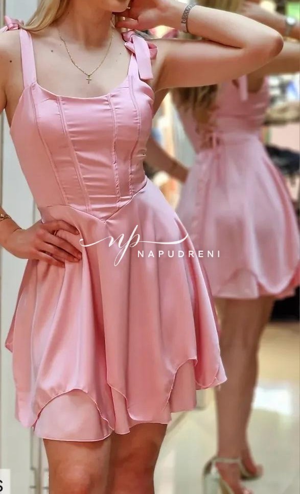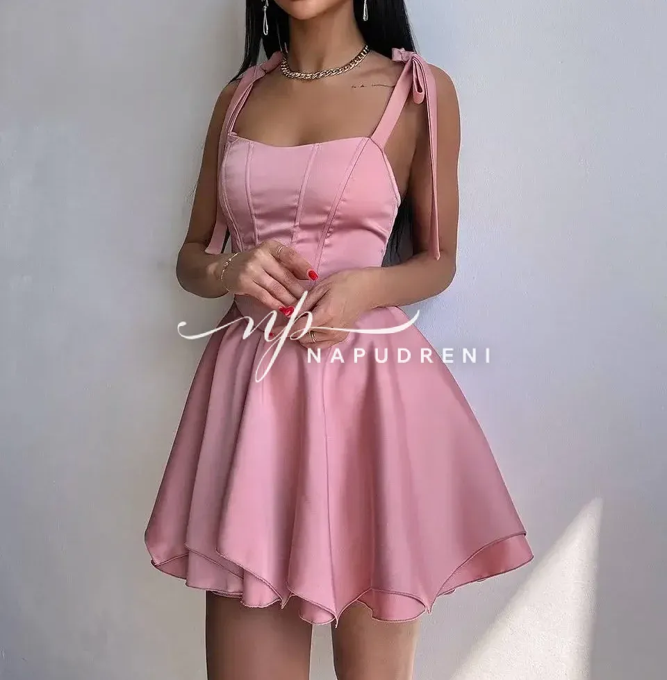 Рокля с корсет и панделки “ONYX“ в розов цвят – код BL9497