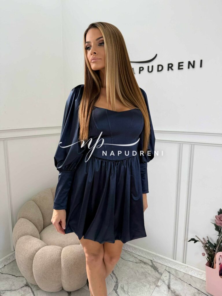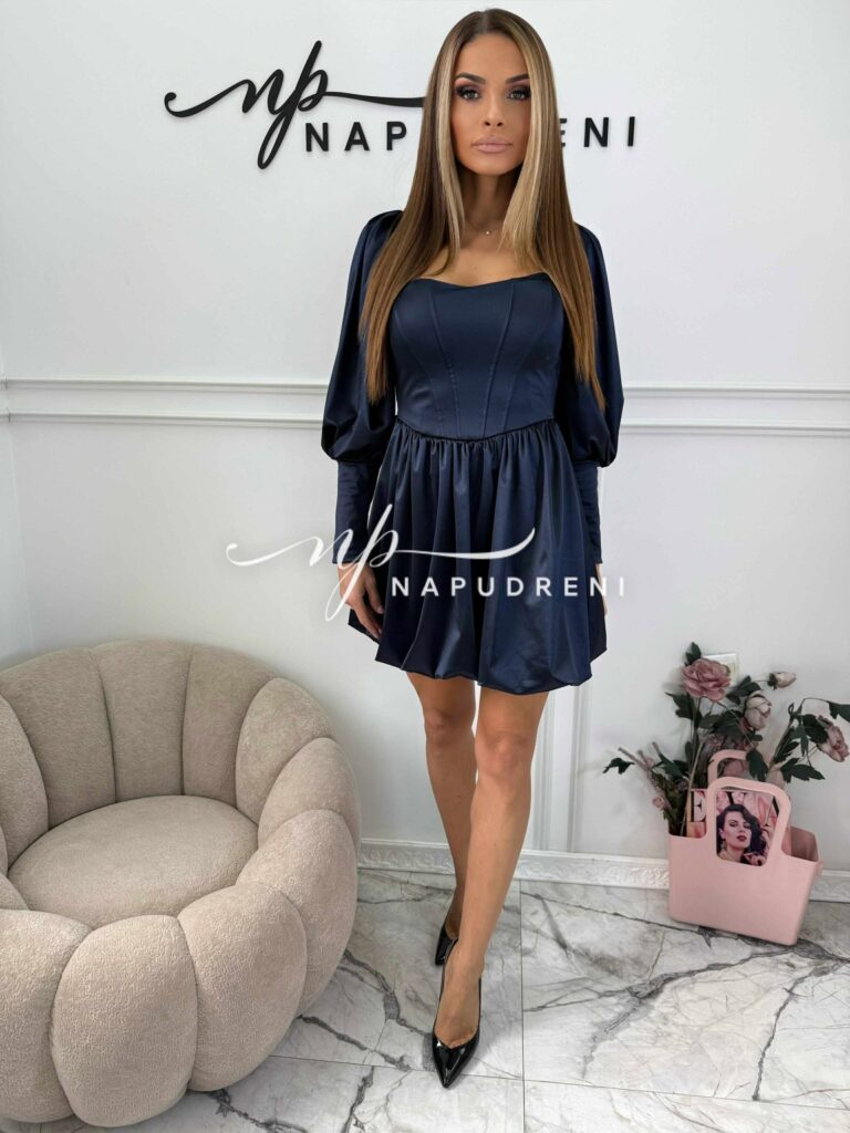 Рокля с корсет и връзки “PLATINA“ в тъмносин цвят – код BL10123