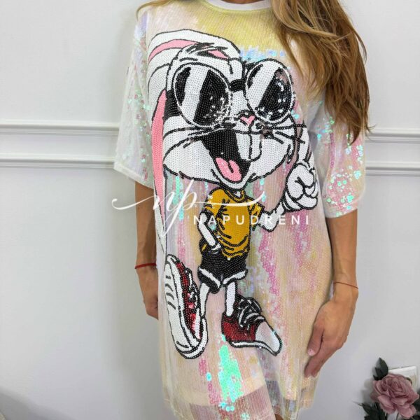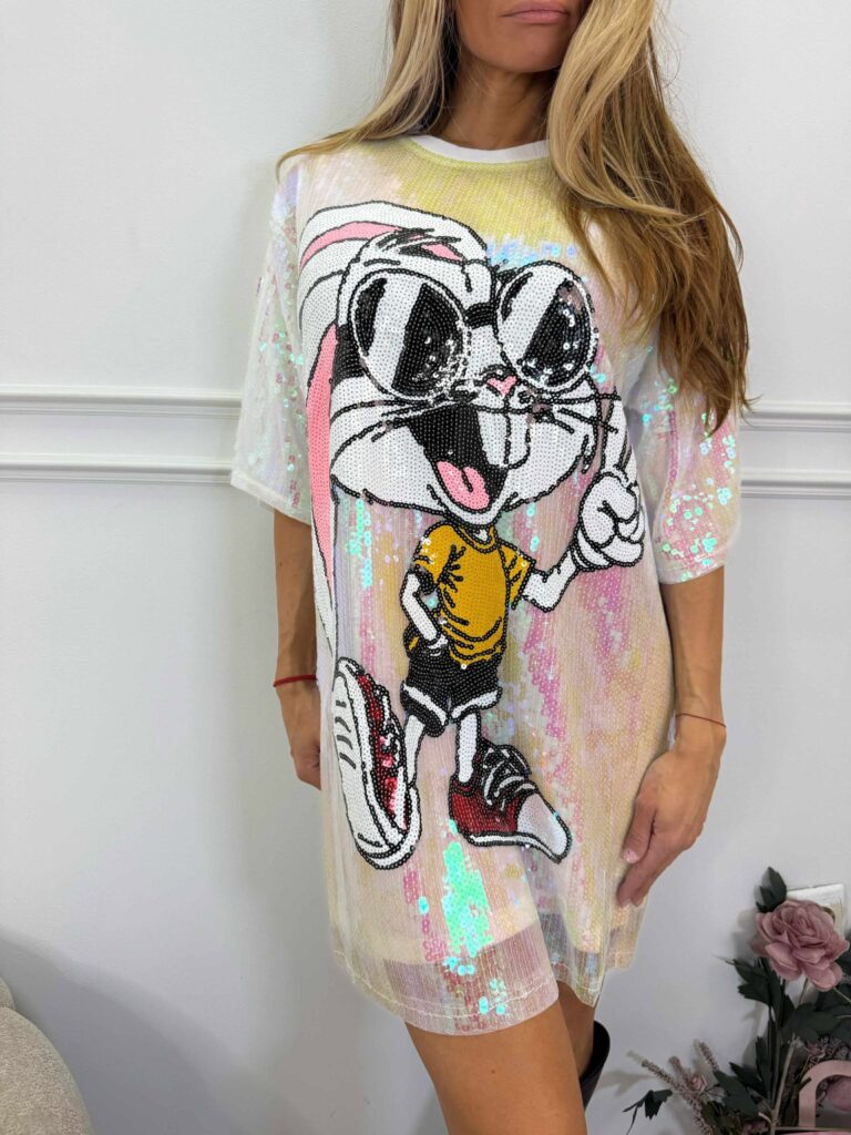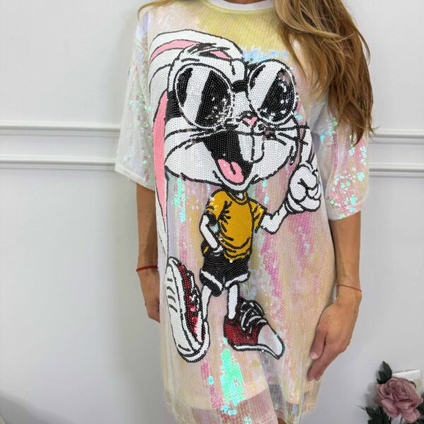 Рокля-туника с пайети “Glow Bunny“ в бял цвят – код BS10068