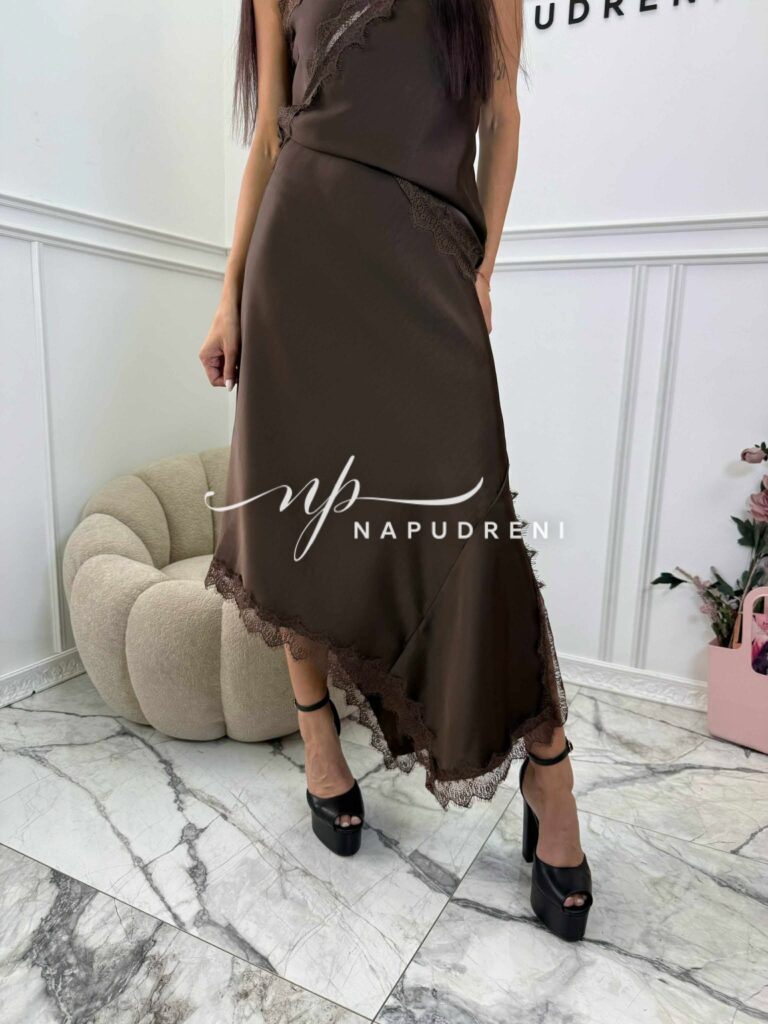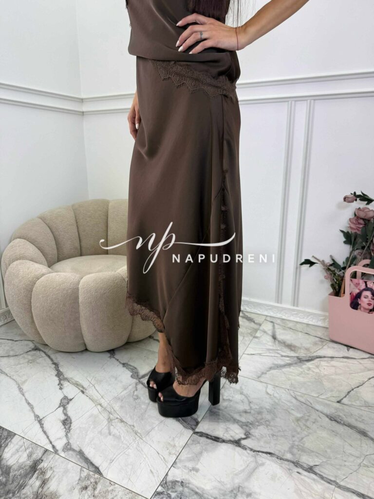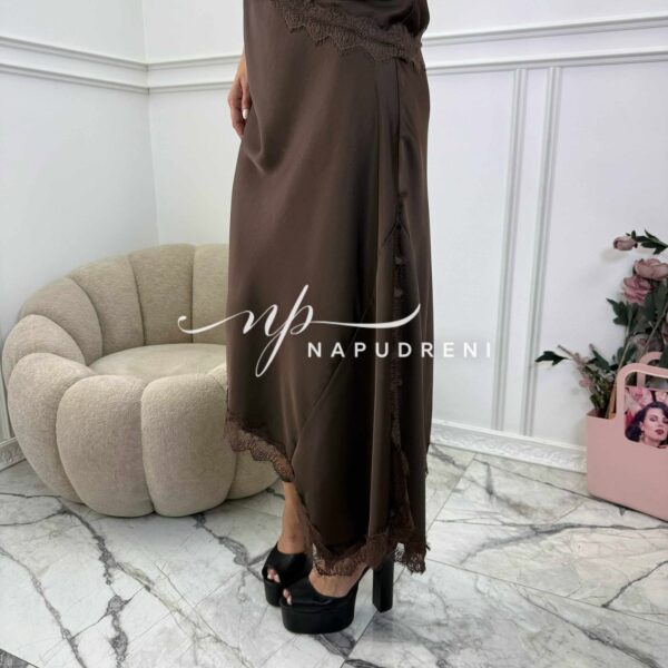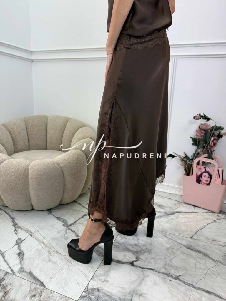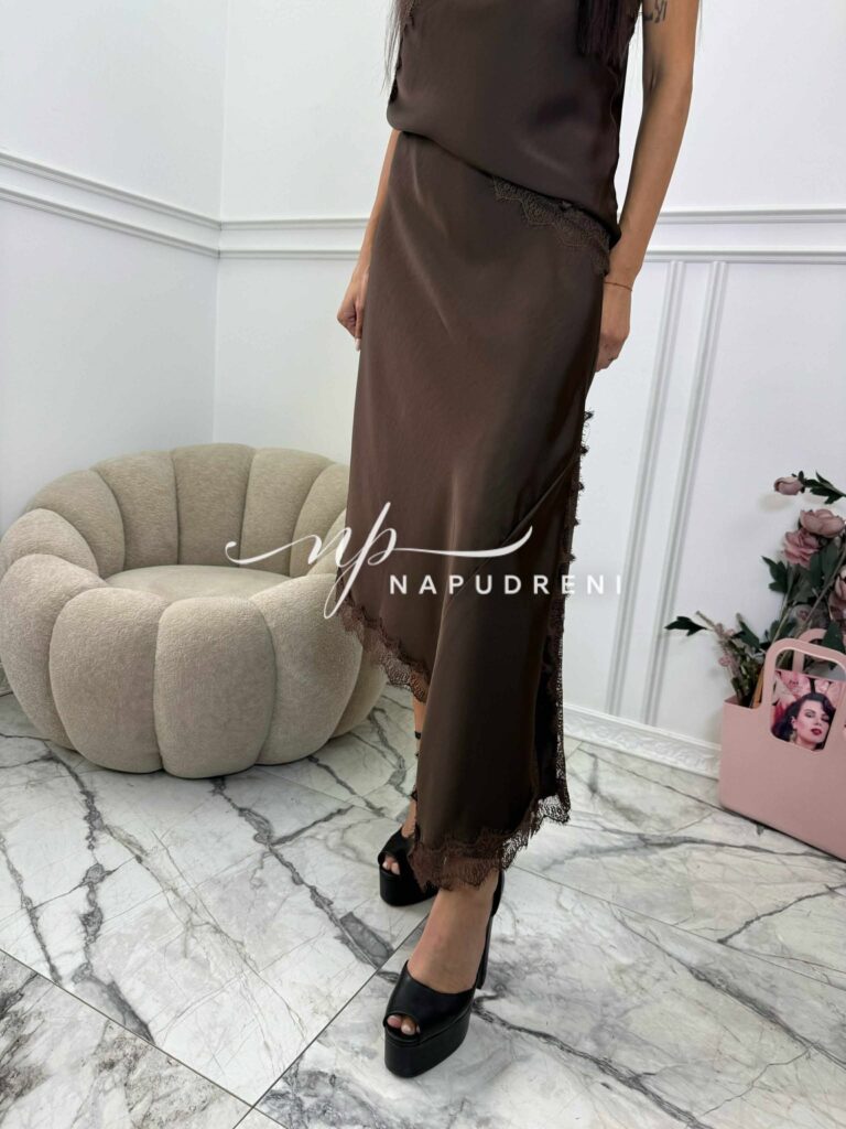 Сатенена пола с дантела в кафяв цвят – код Bi10030