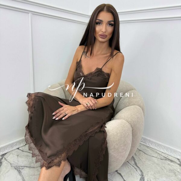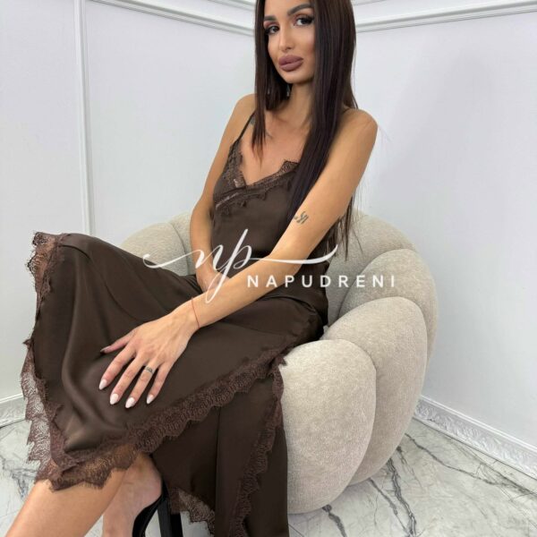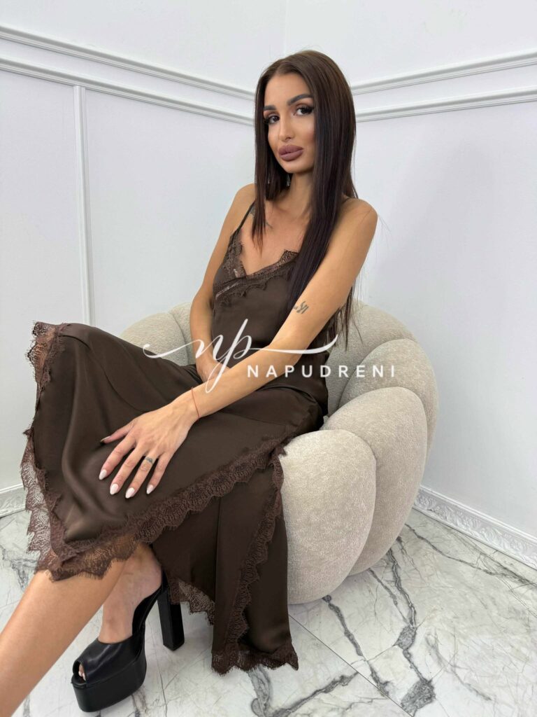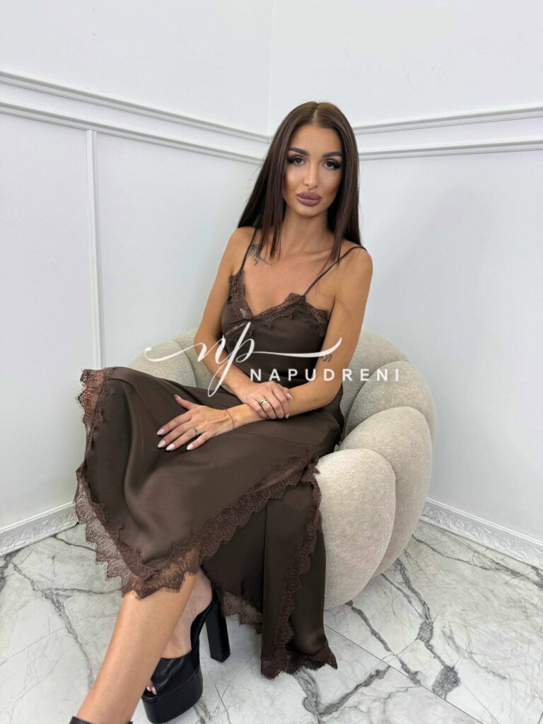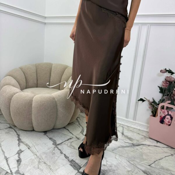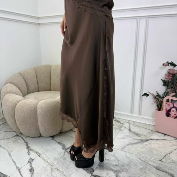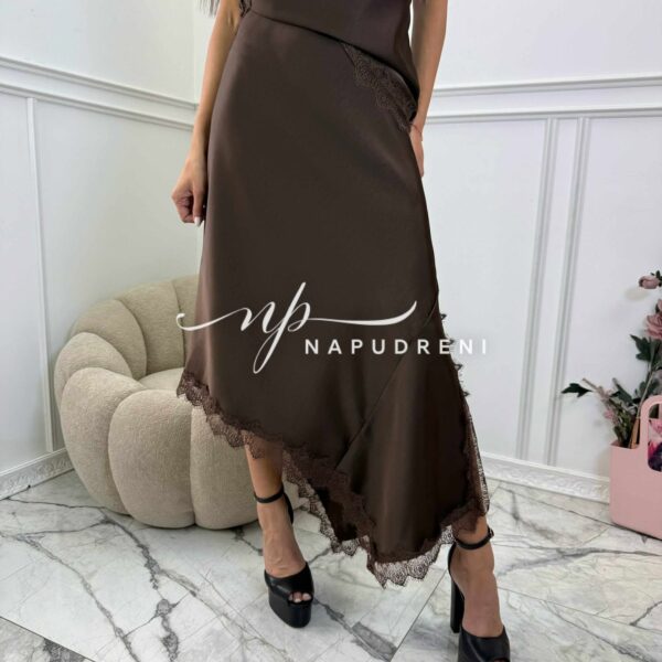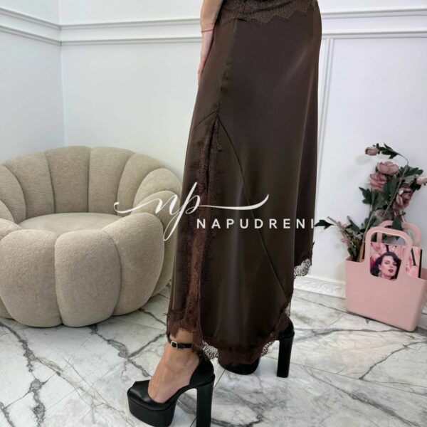 Сатенена пола с дантела в кафяв цвят – код Bi10030
