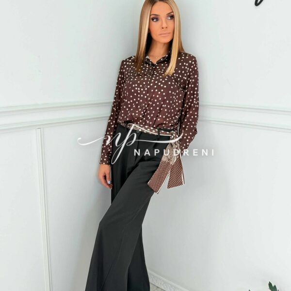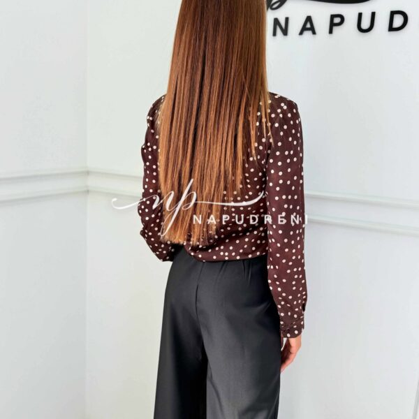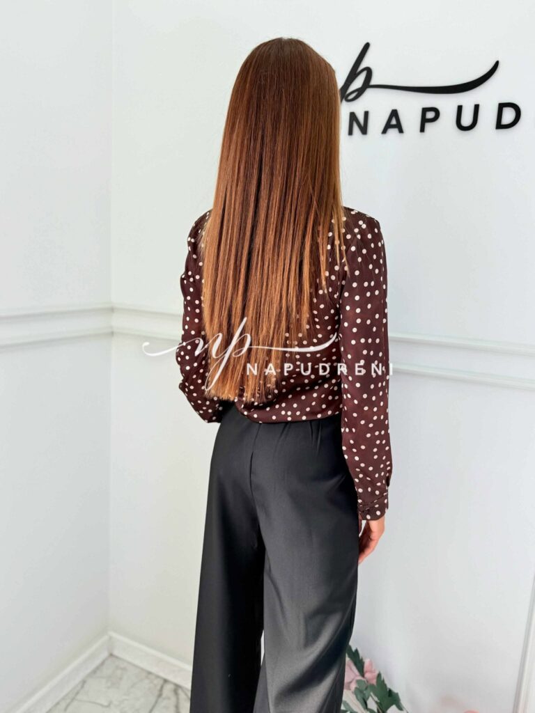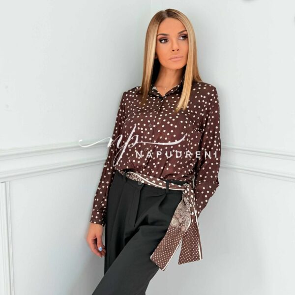 Сатенена риза с бели точки в кафяв цвят – код Bi9864