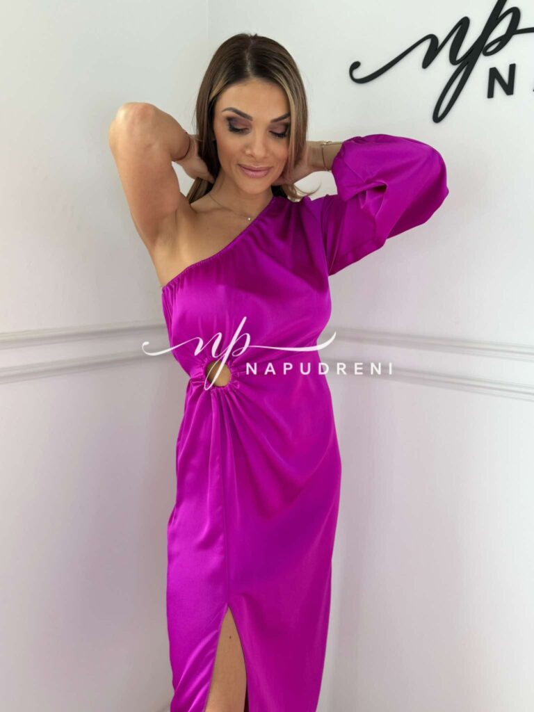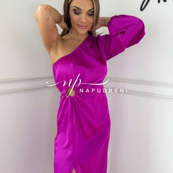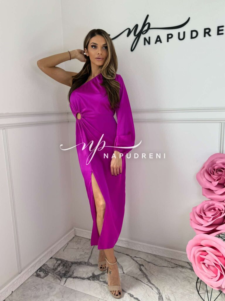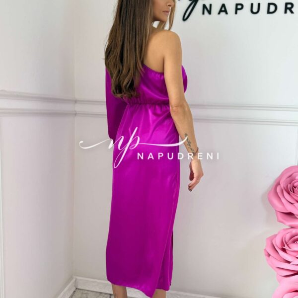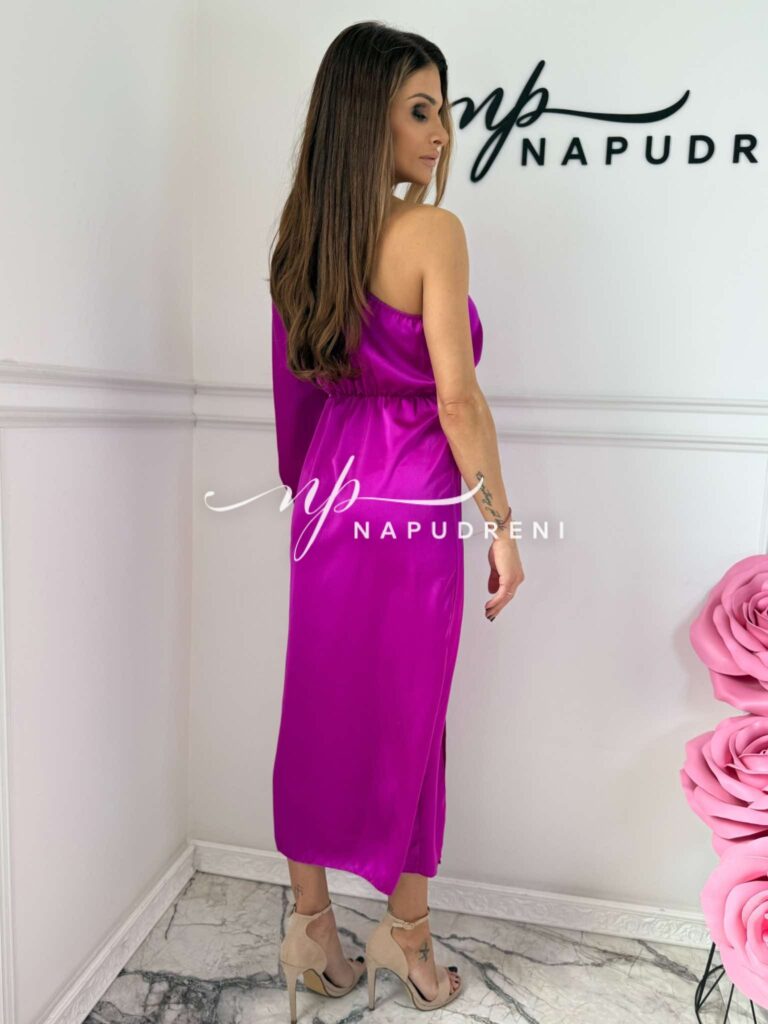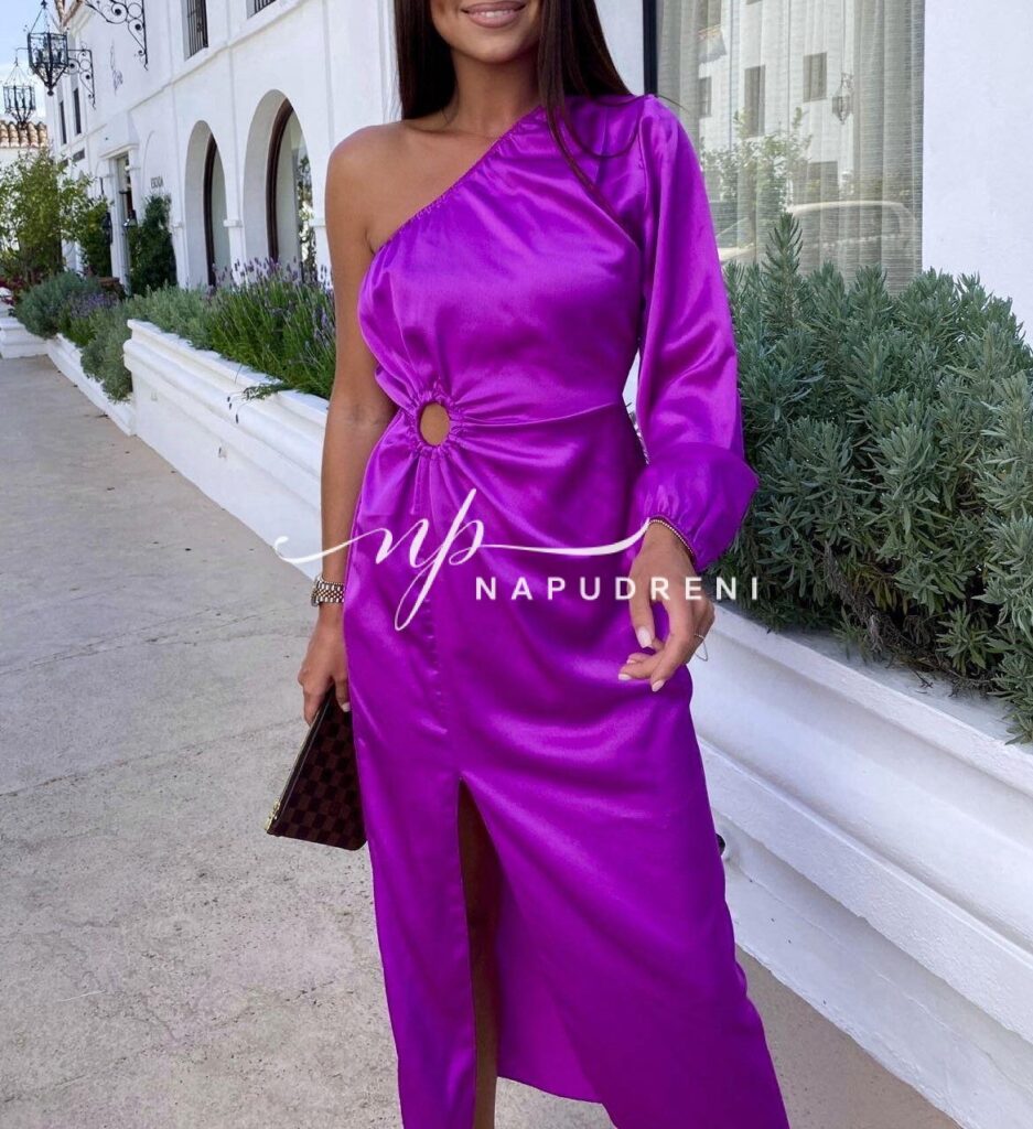 Сатенена рокля с ефектна кройка в лилав цвят – код 7303