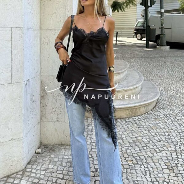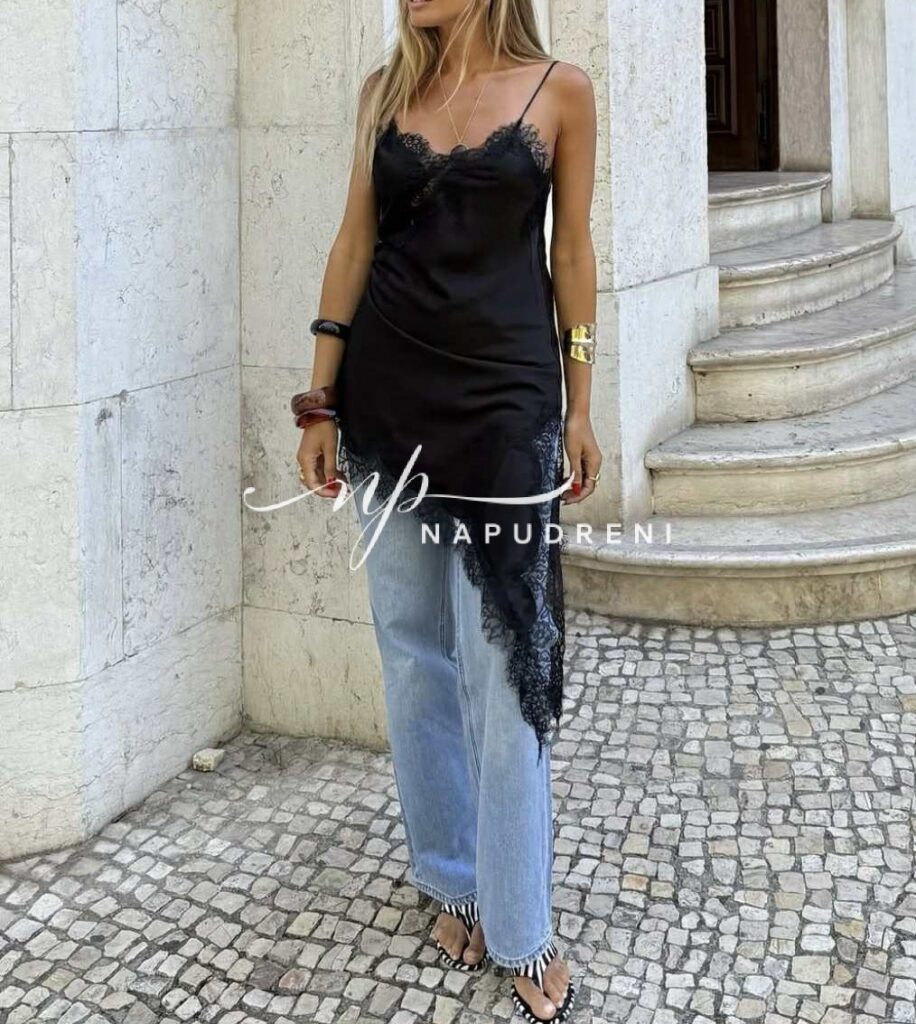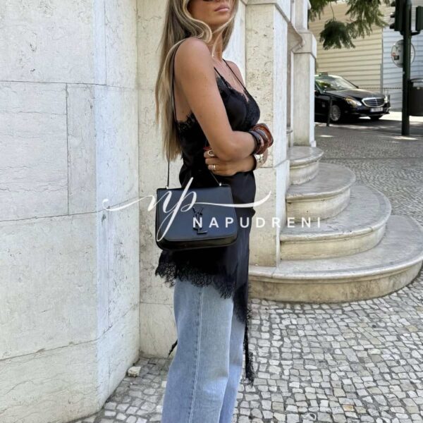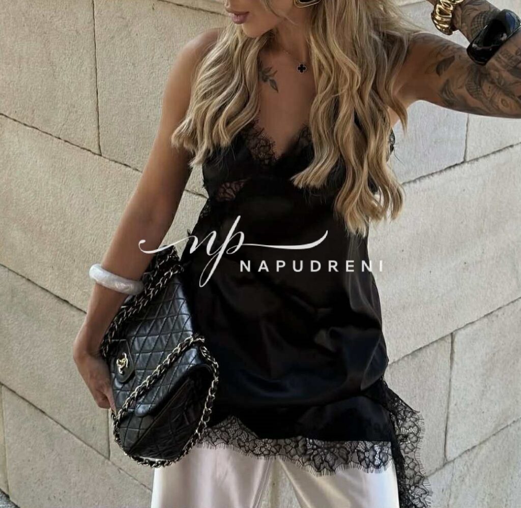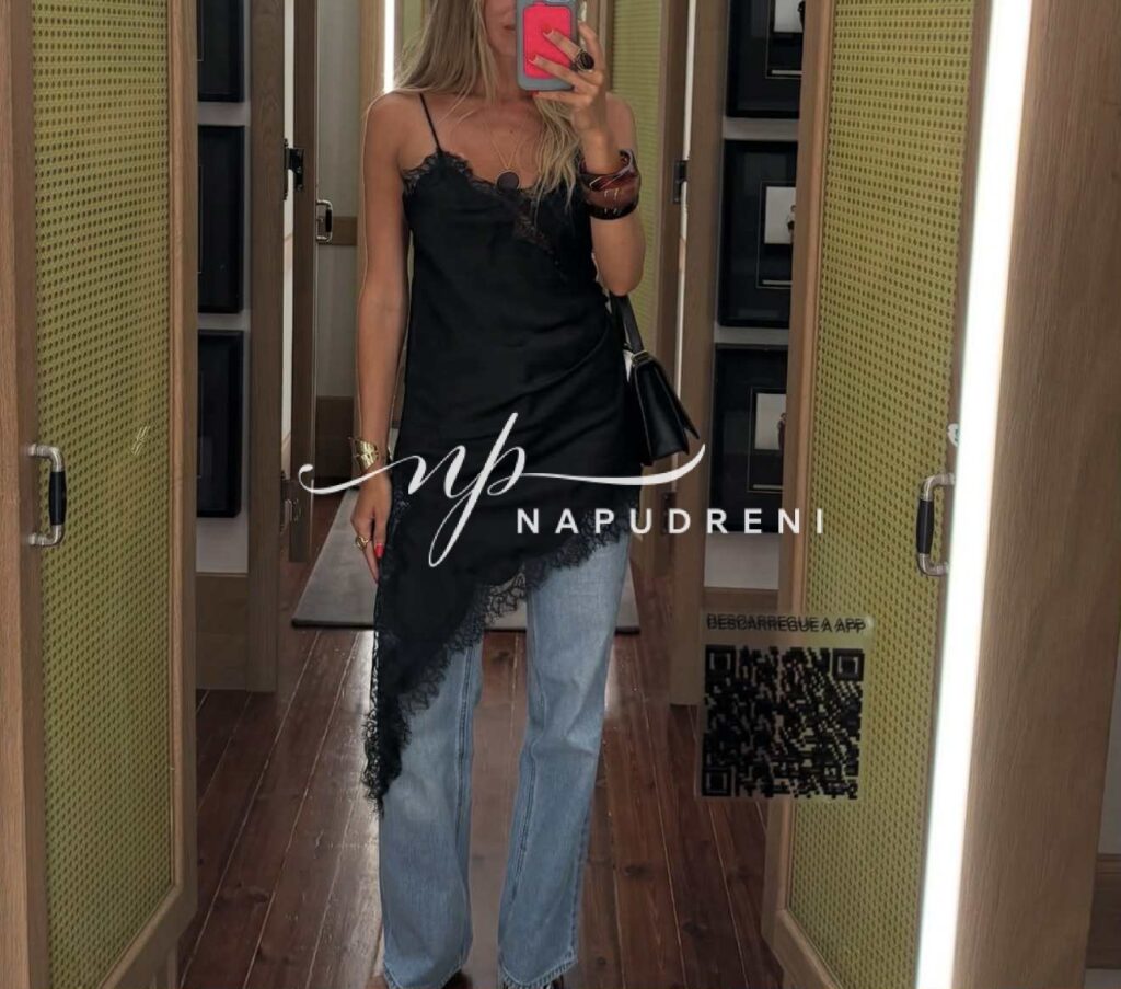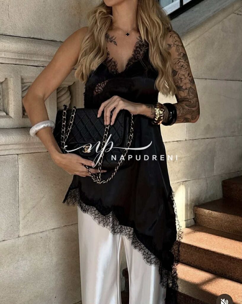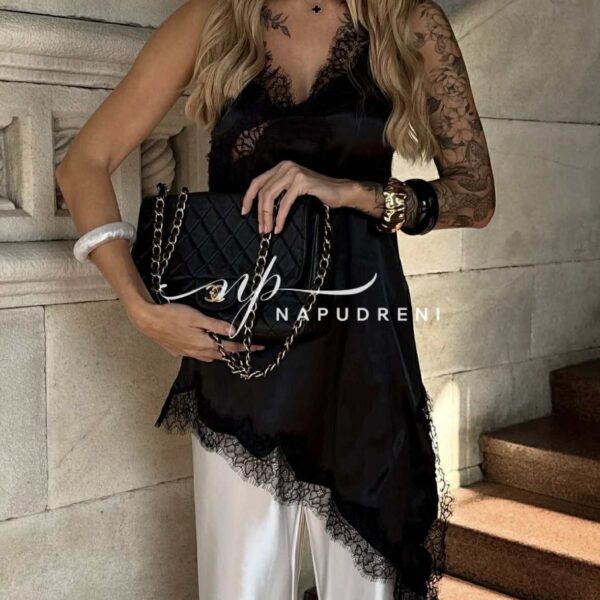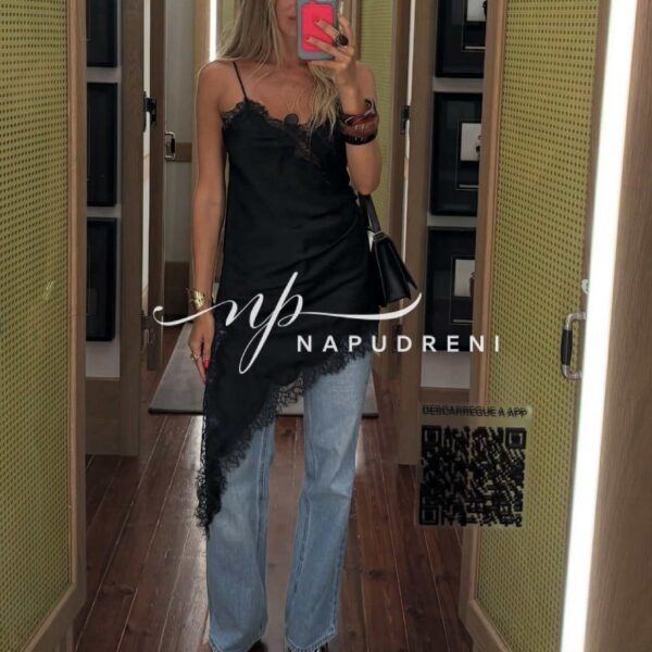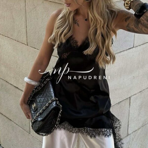 Сатенена туника-рокля с дантела в черен цвят – код Bi9918