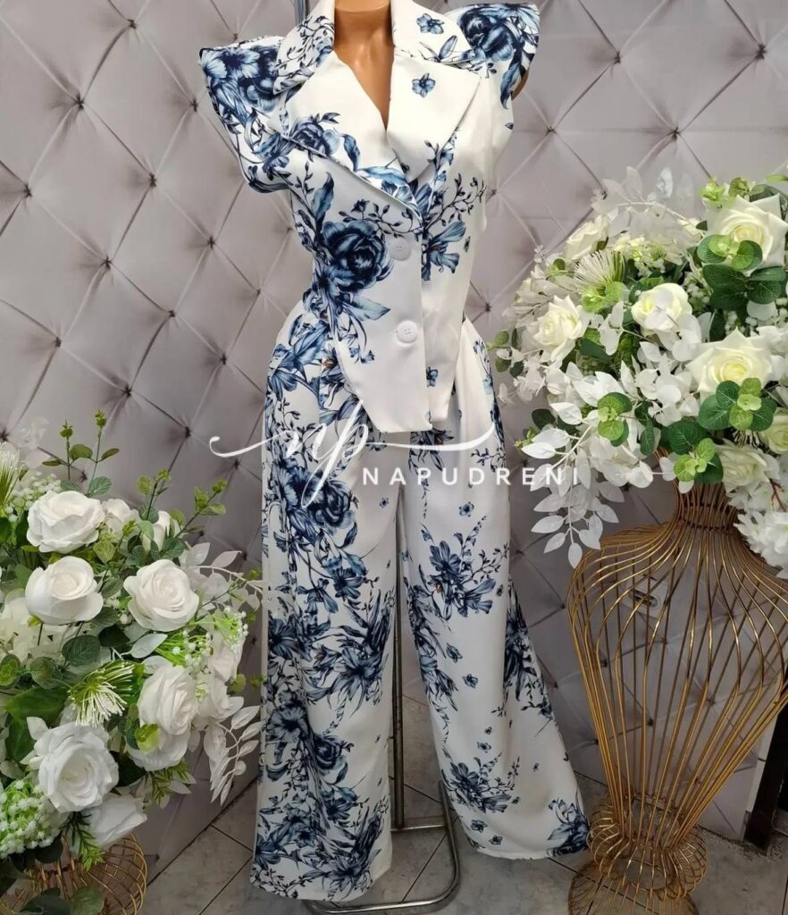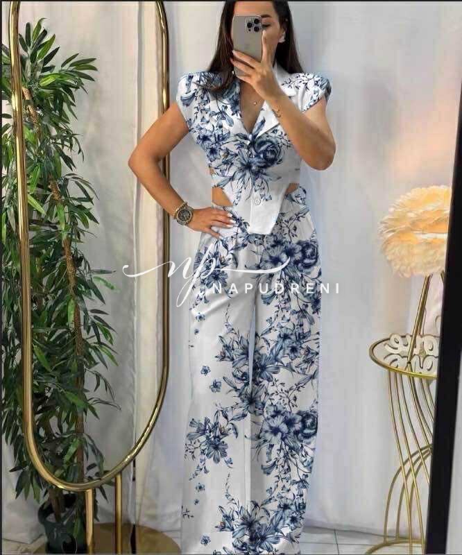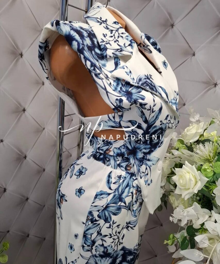 Сет от две части в бял цвят със сини цветя – код BL9543