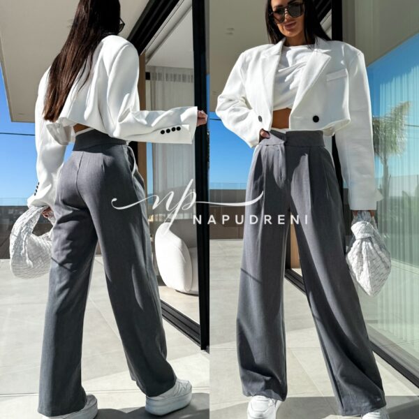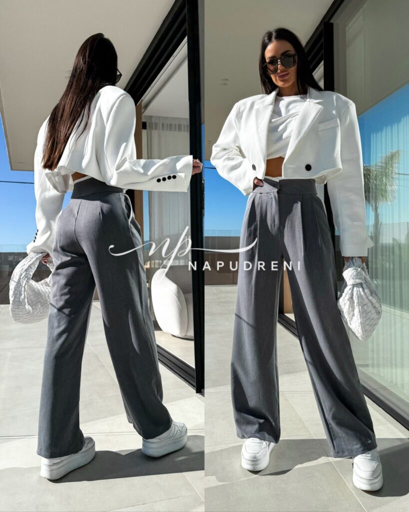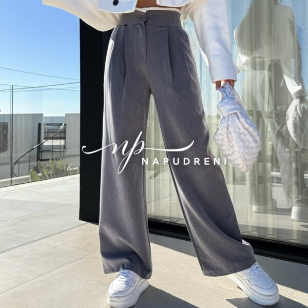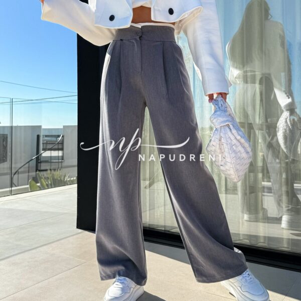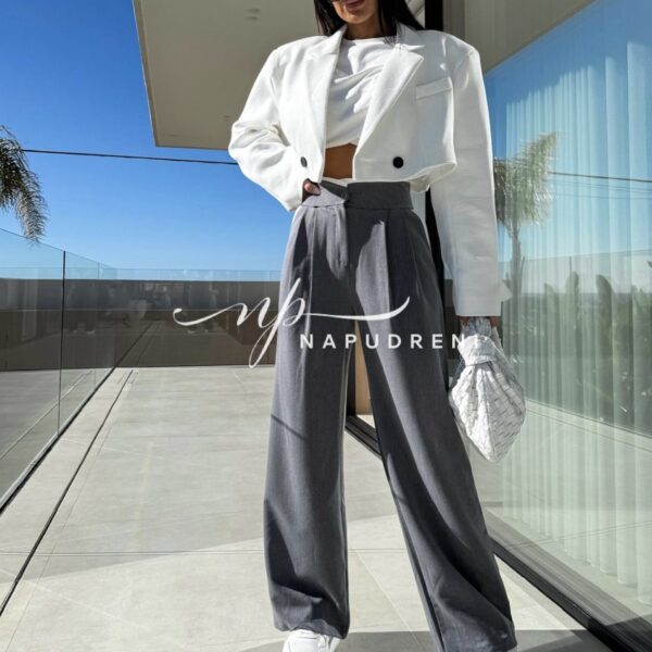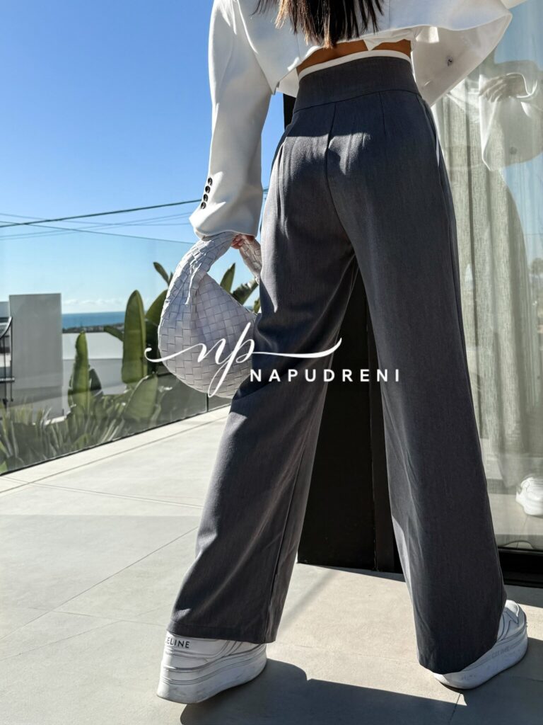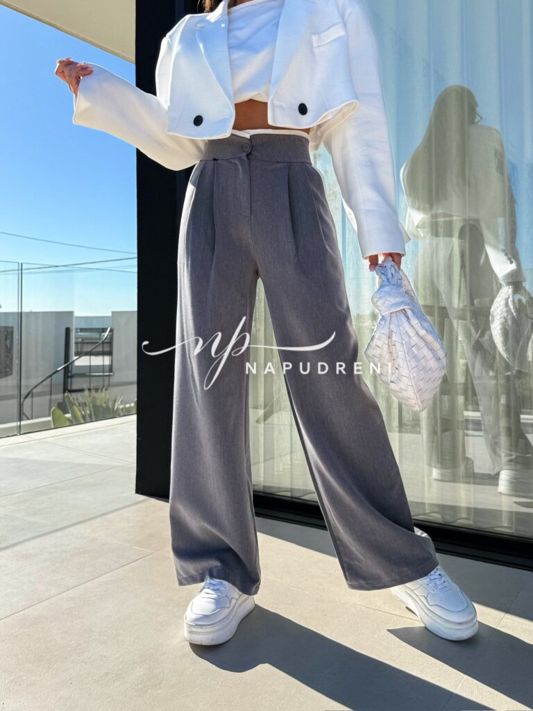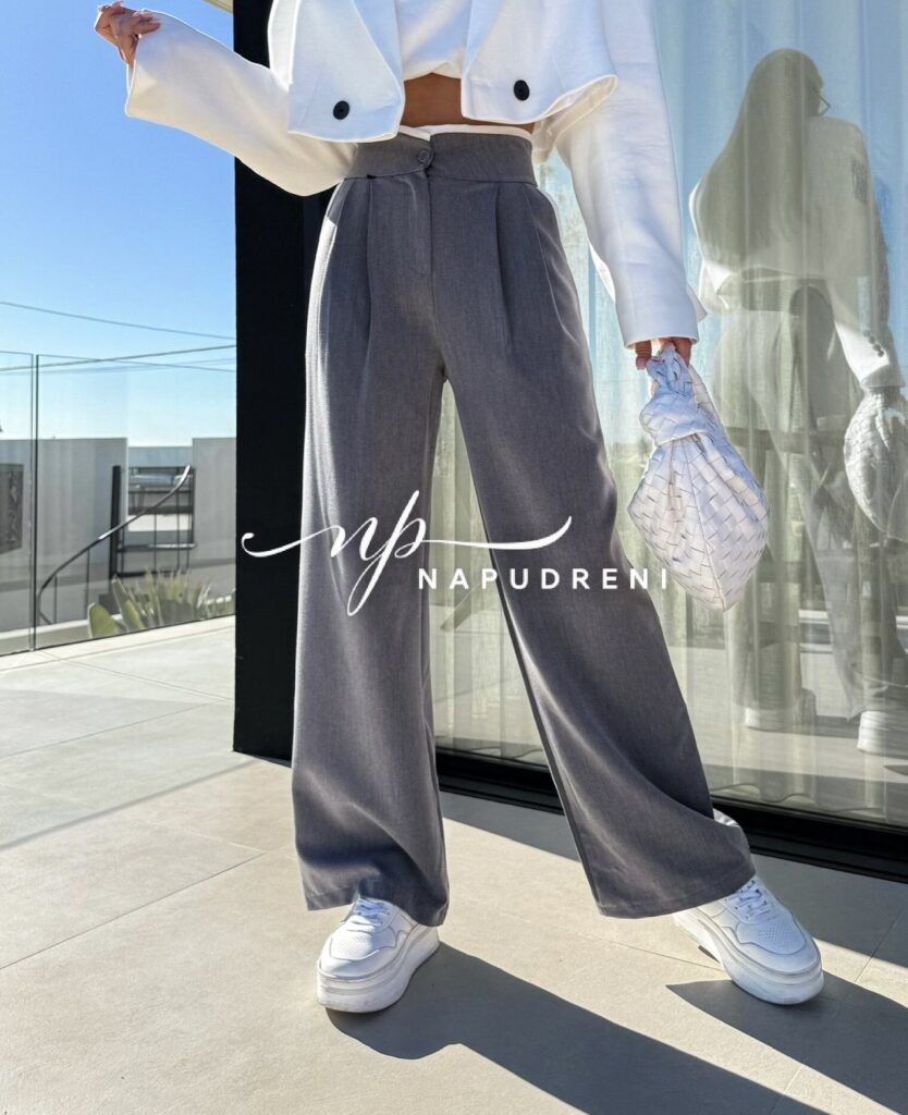 Стилен разкроен панталон с ефектно закопчаване в сив цвят – код 8626