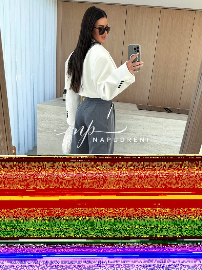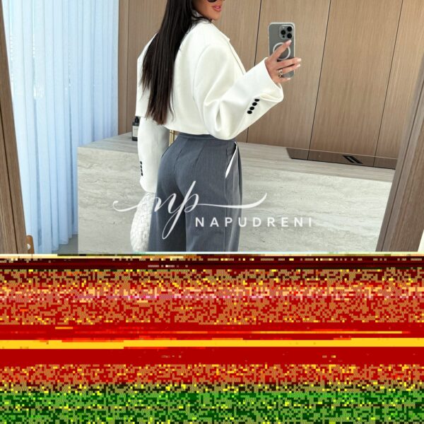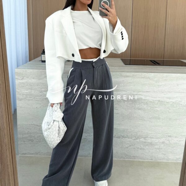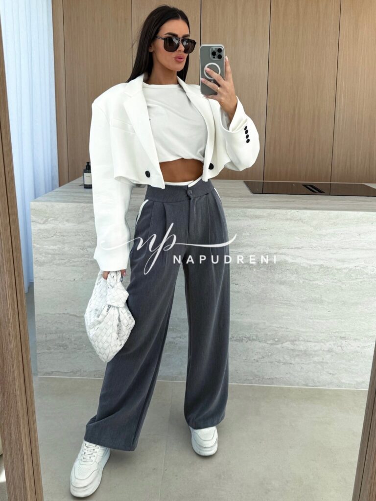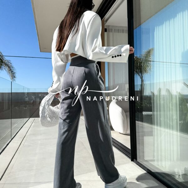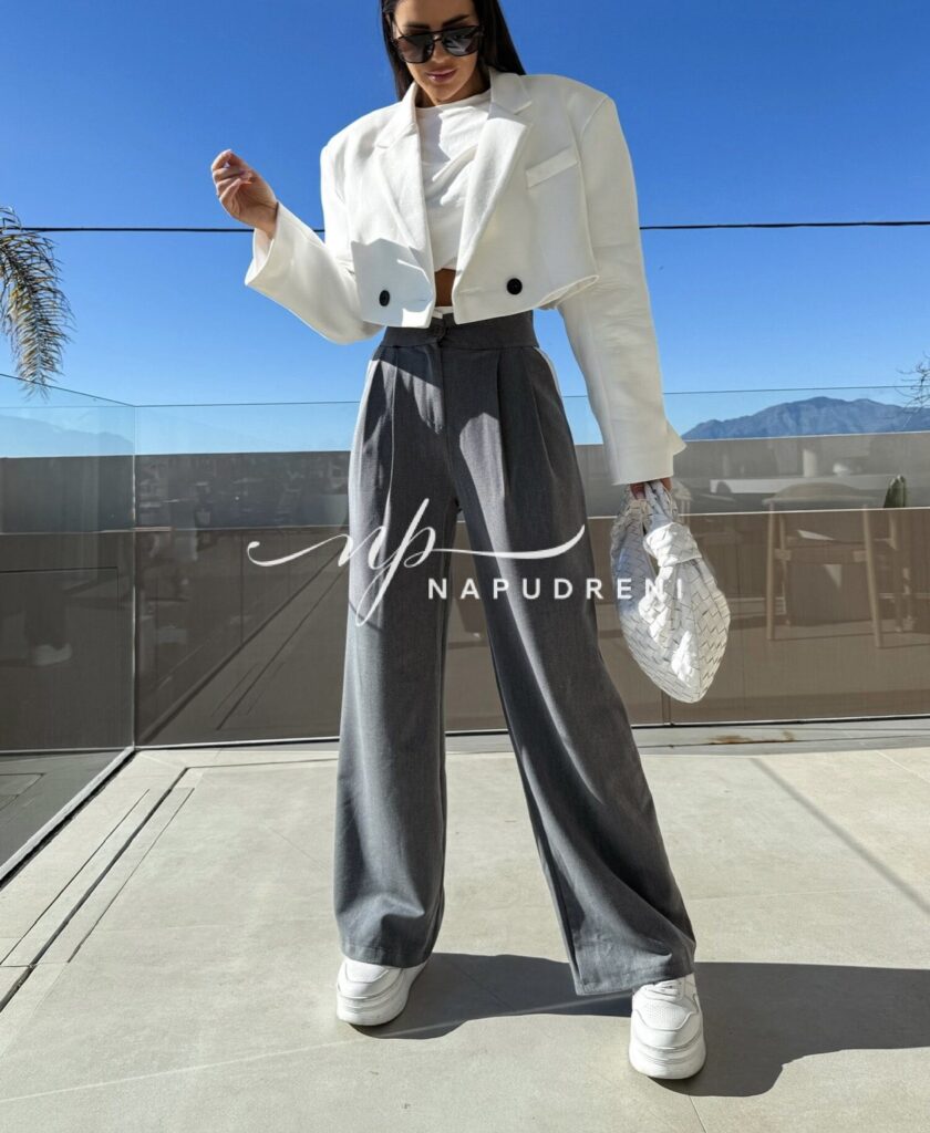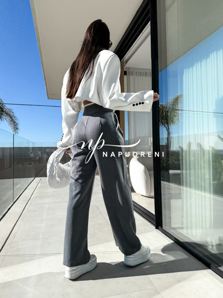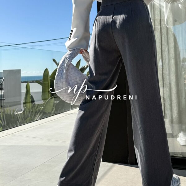 Стилен разкроен панталон с ефектно закопчаване в сив цвят – код 8626