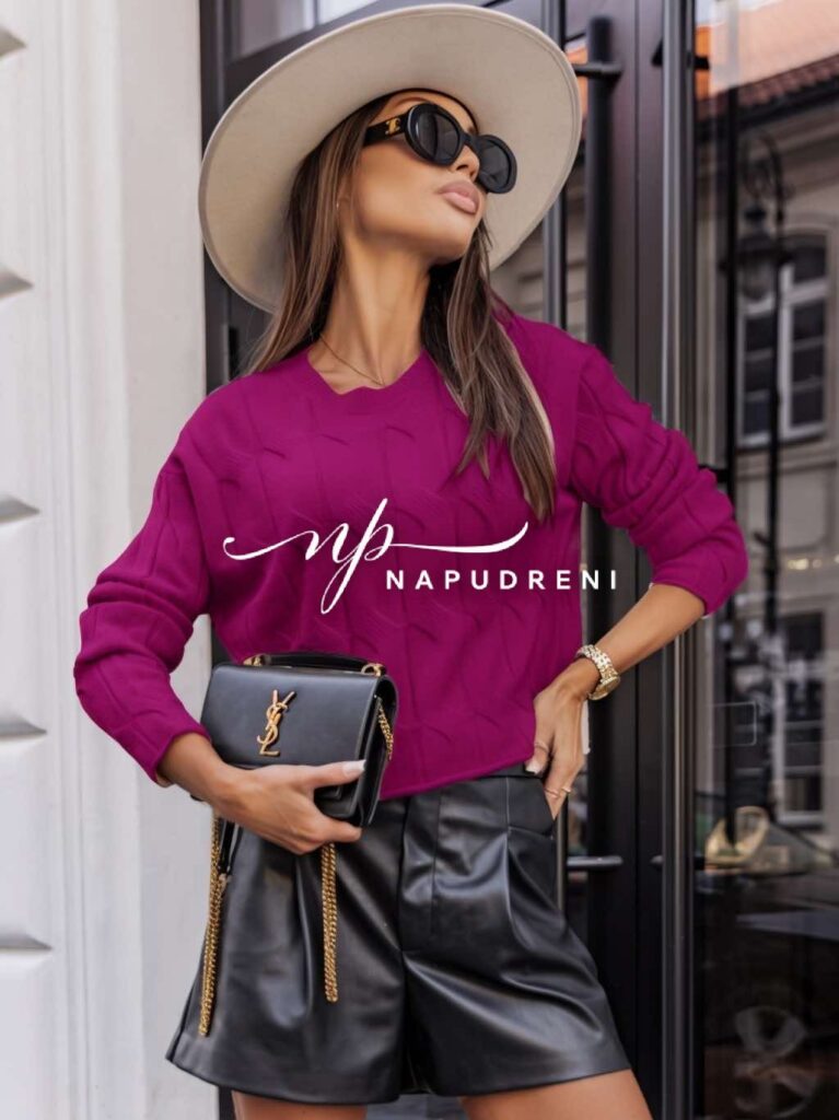 Стилна блуза плетиво с орнаменти в лилав цвят – код 8304
