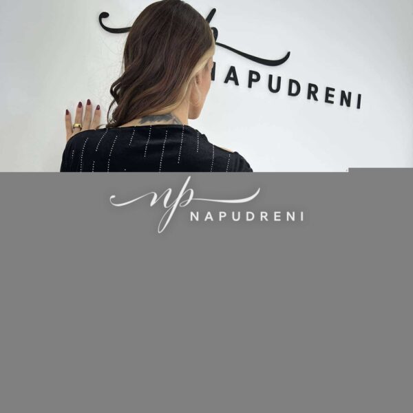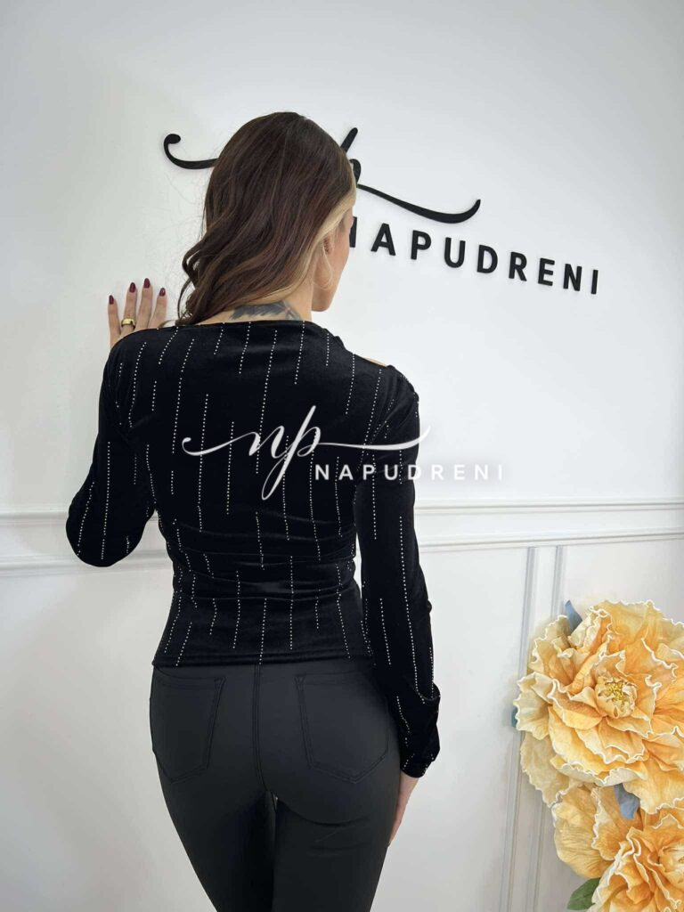 Стилна блуза с отворено деколте и камъчета в черен цвят – код 8605