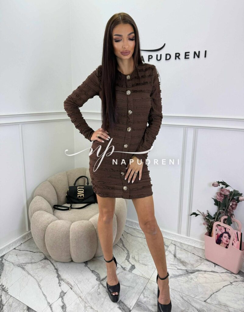 Стилна рокля “MIDNIGHT“ в кафяв цвят – код Bi10020
