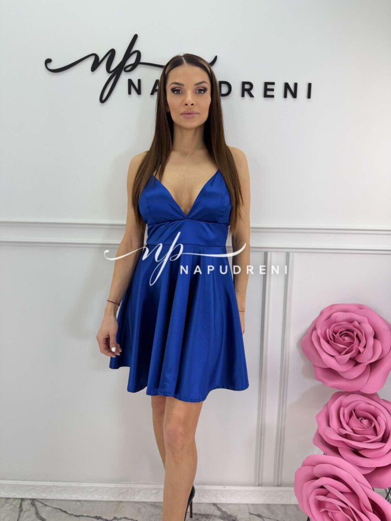 Стилна сатенена рокля “KAYRA“ в син цвят – код 8769