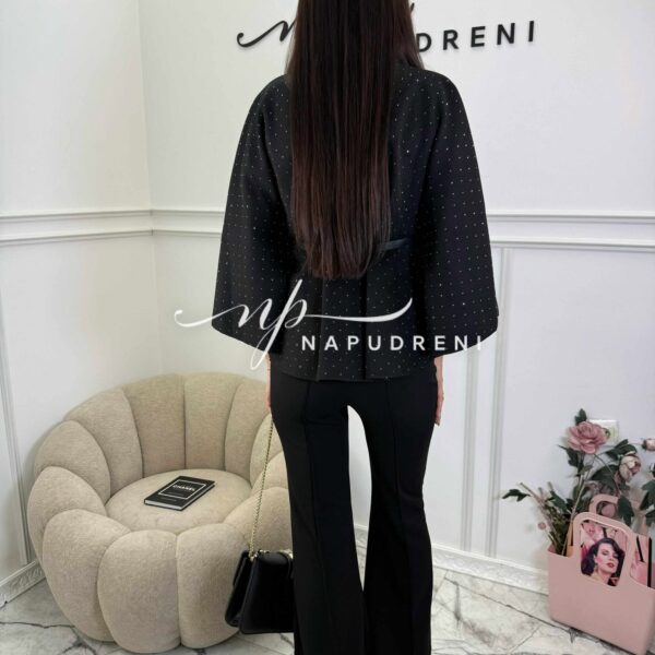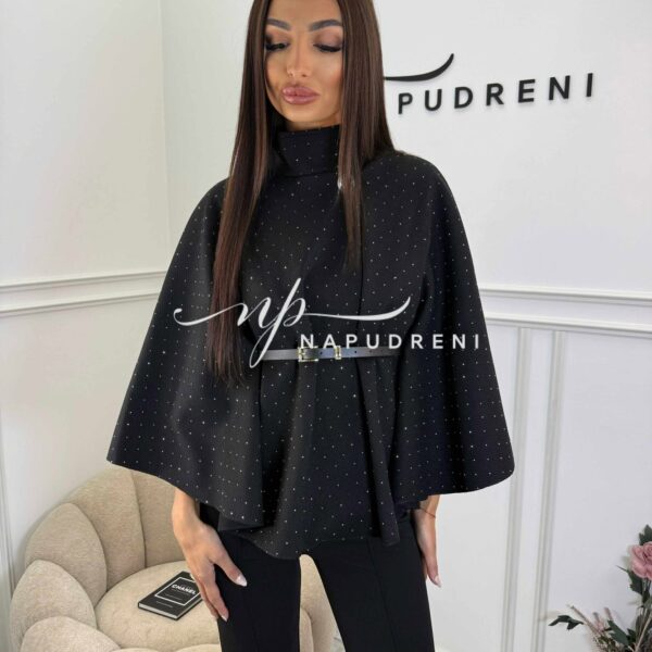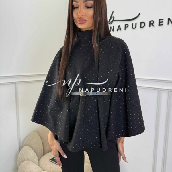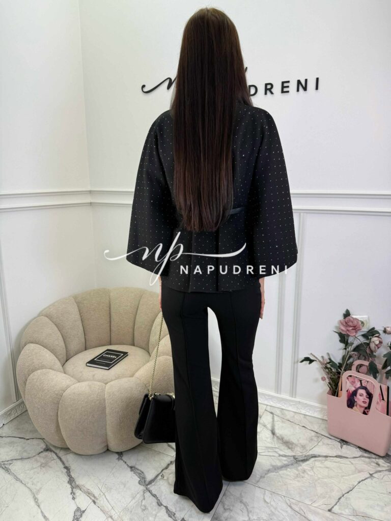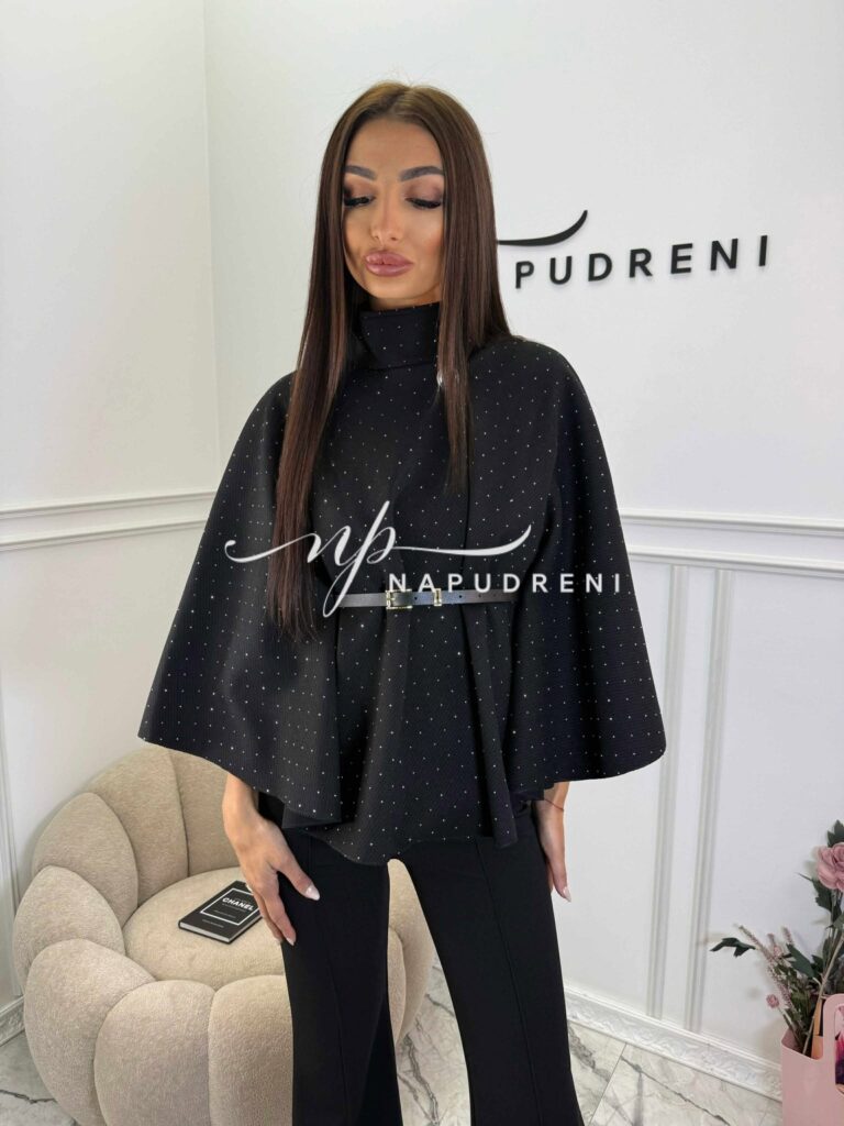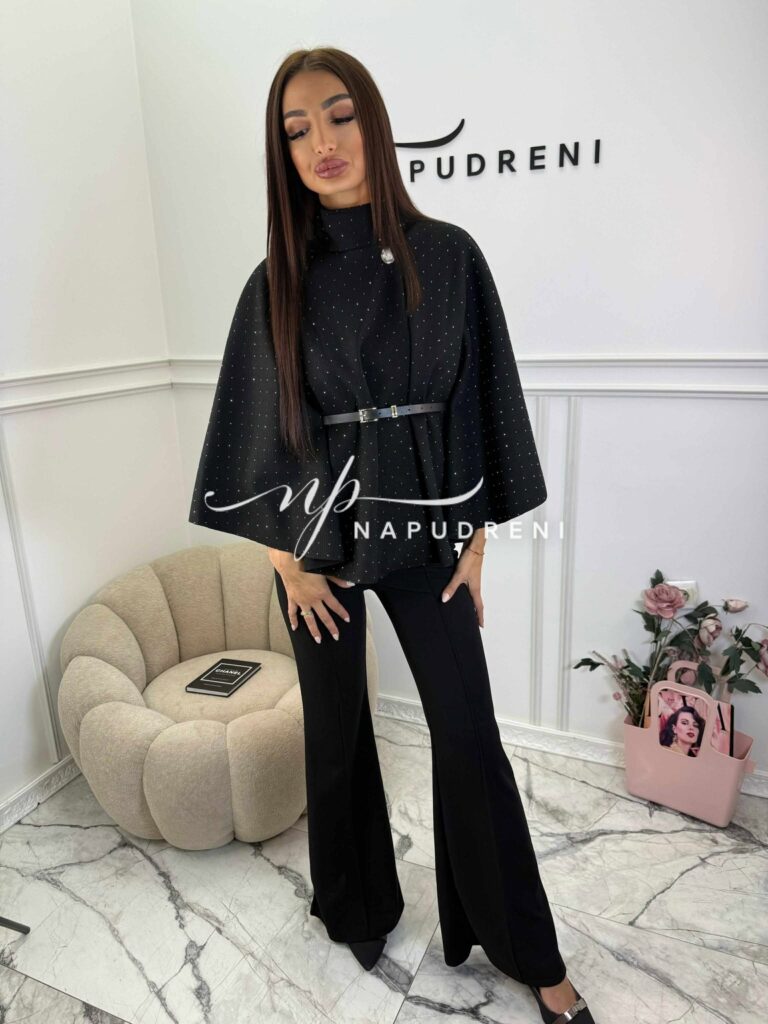Стилно палто с колан и камъчета в черен цвят – код BL10163