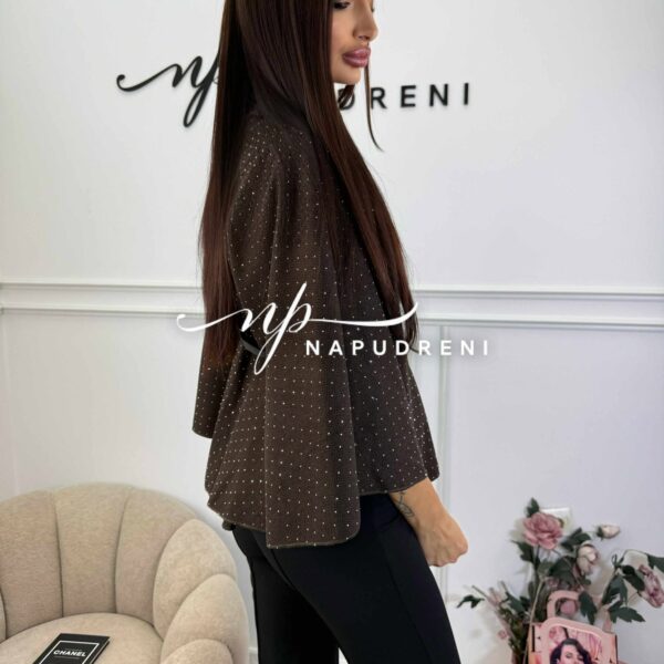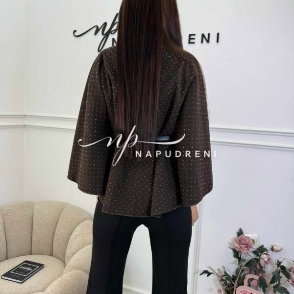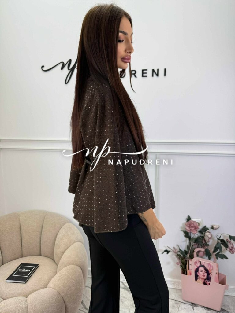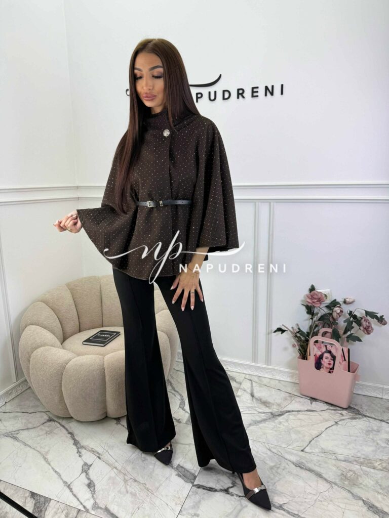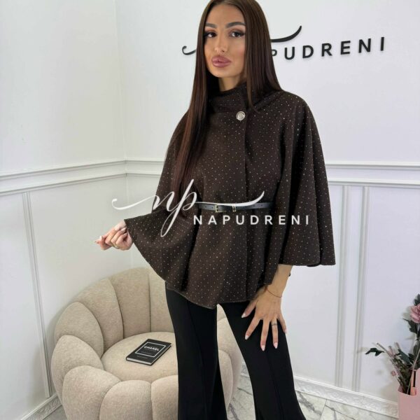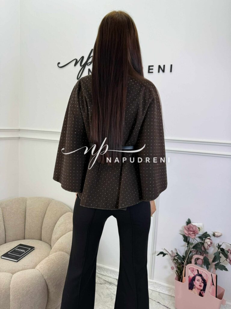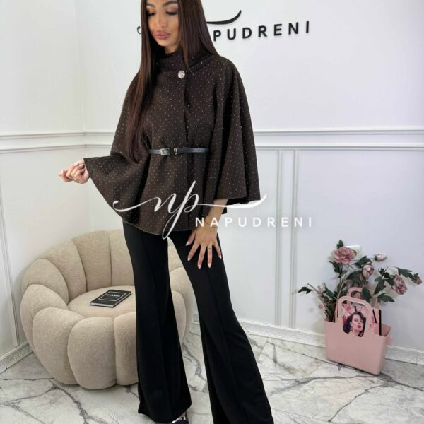 Стилно палто с колан и камъчета в кафяв цвят – код BL10164