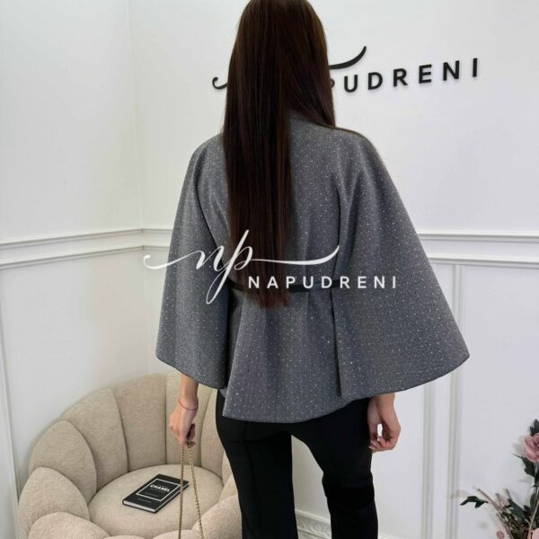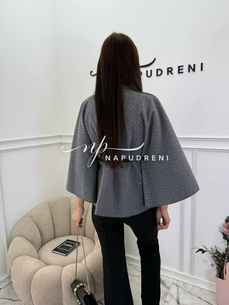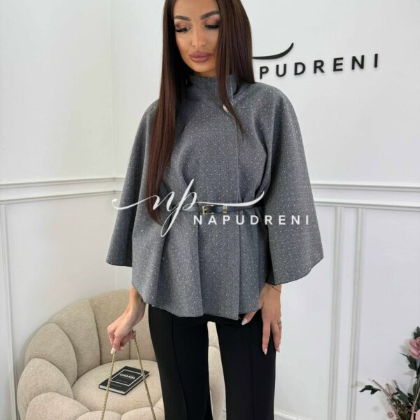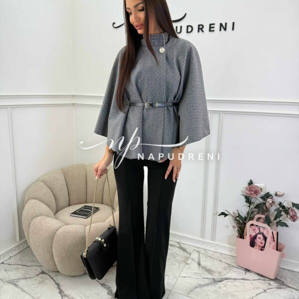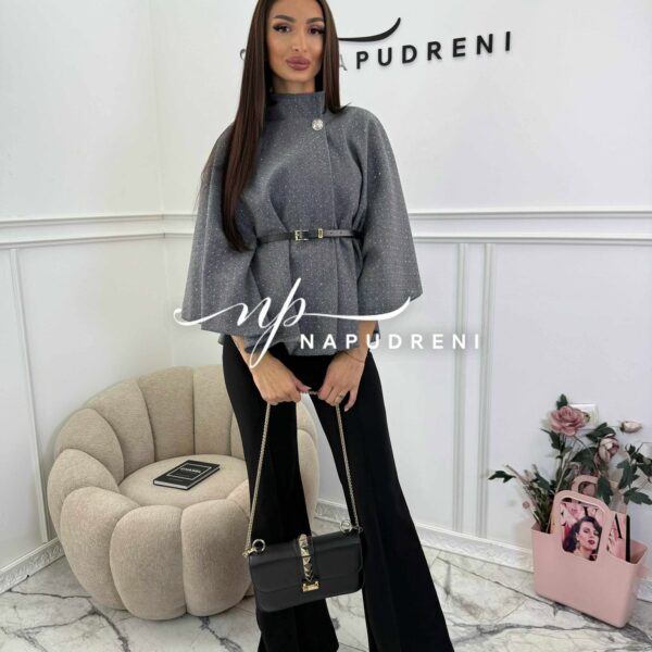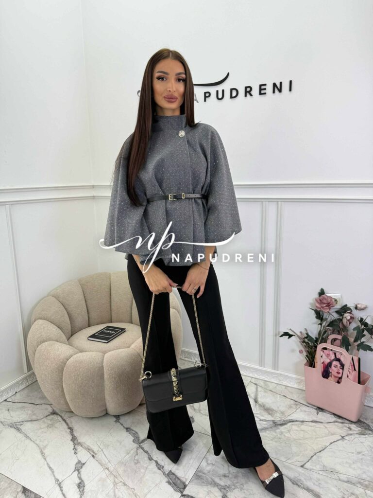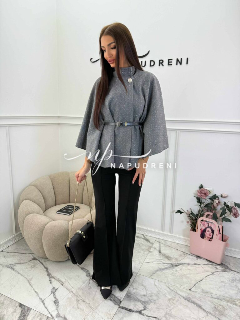 Стилно палто с колан и камъчета в сив цвят – код BL10165