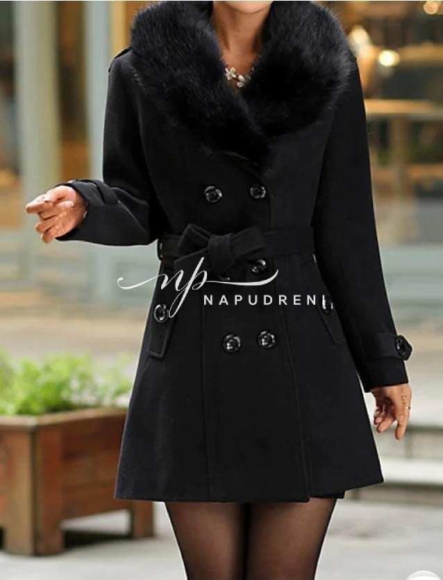 Стилно палто с копчета и пух в черен цвят – код 8352