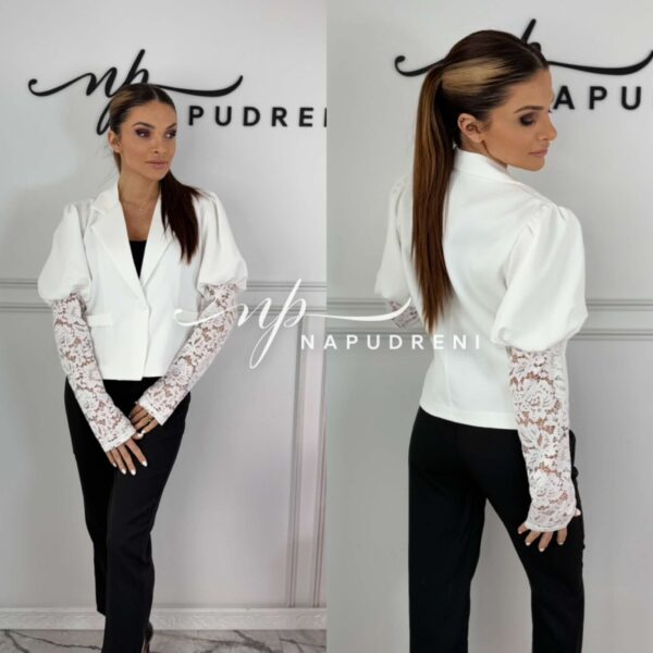 Стилно сако с дантелени ръкави в бял цвят – код 8821