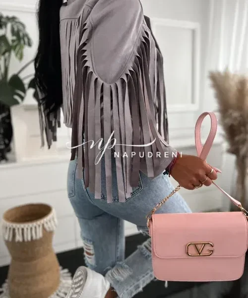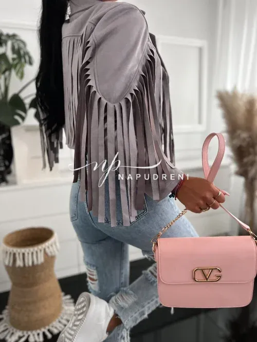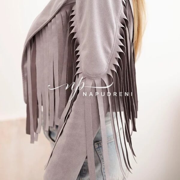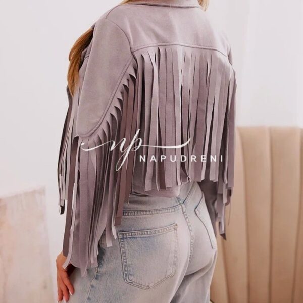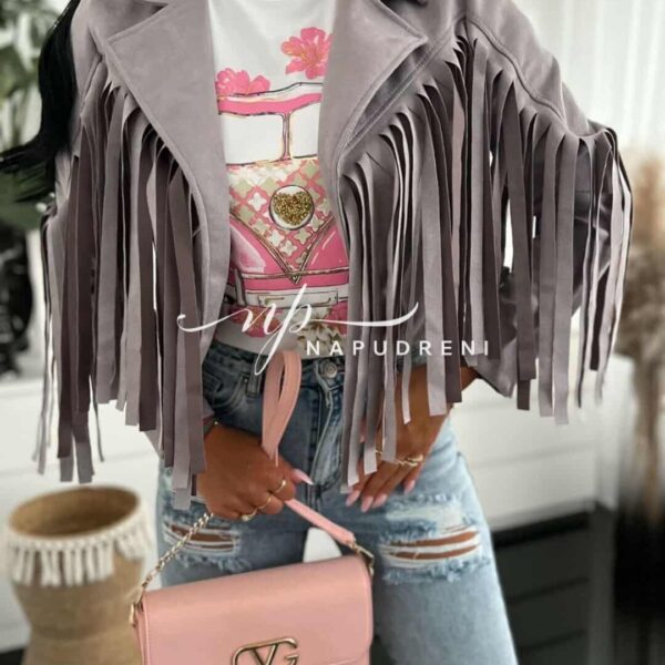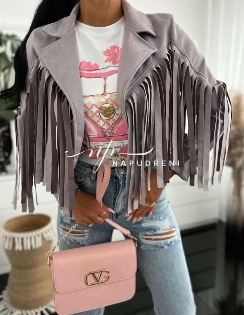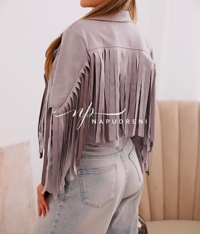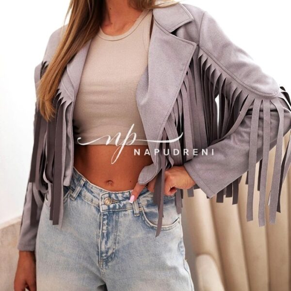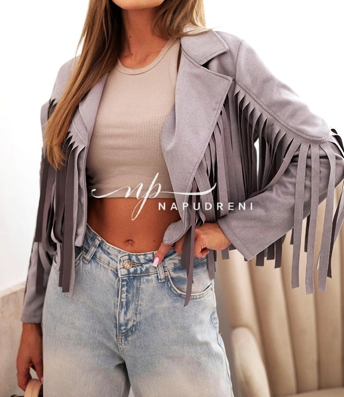 Стилно яке-пелерина с ресни в сив цвят – код BL9727