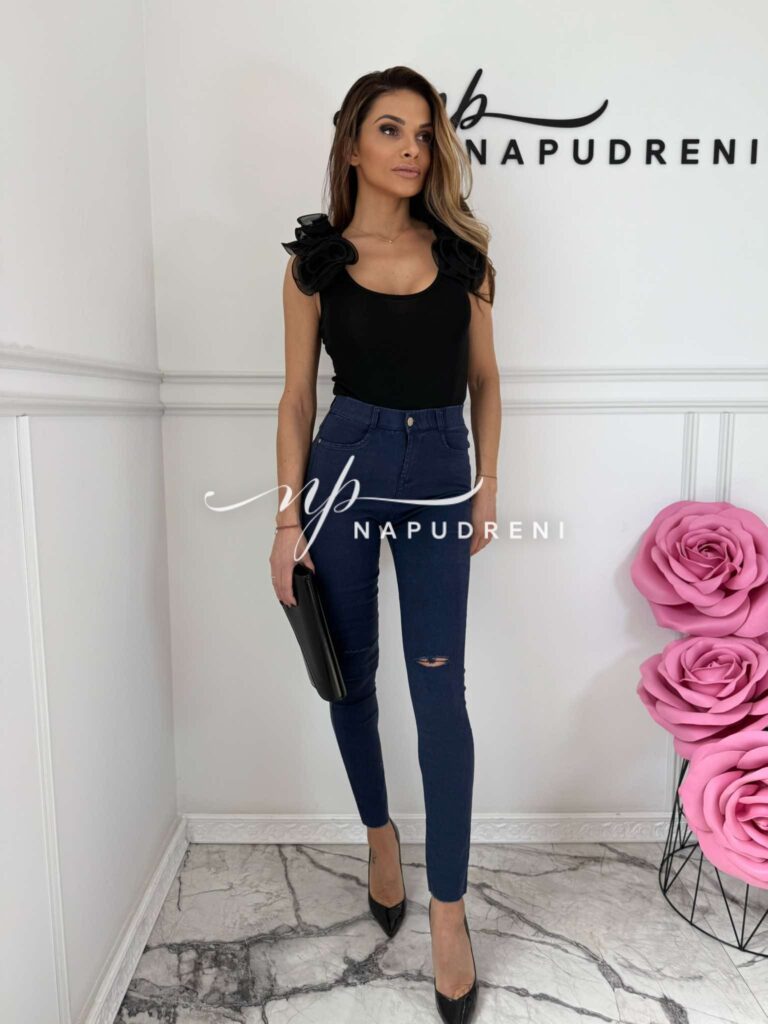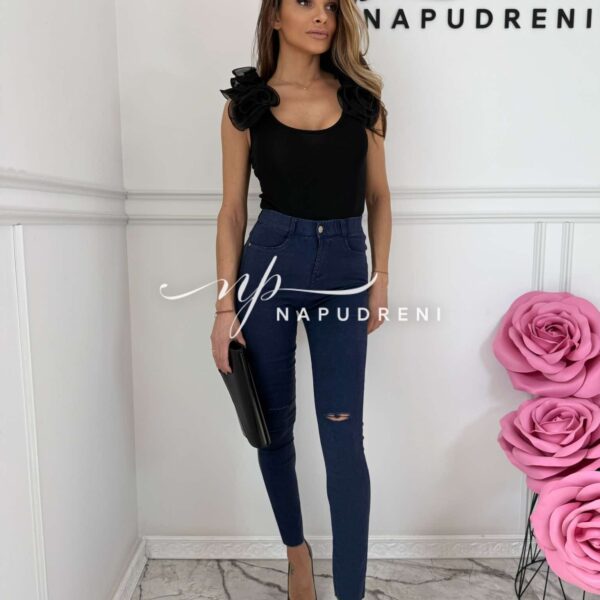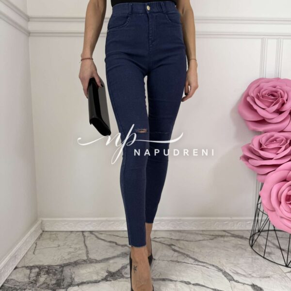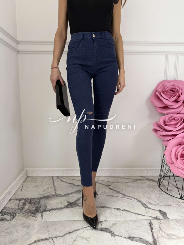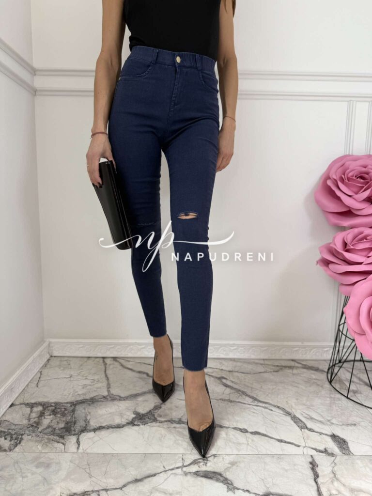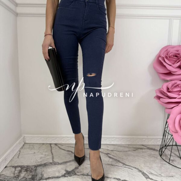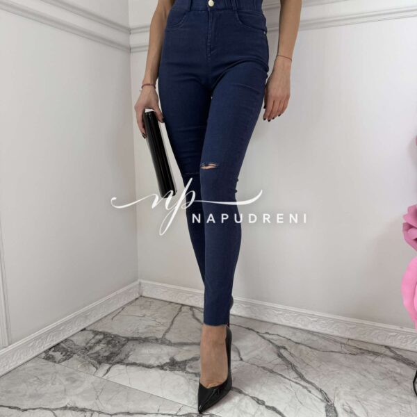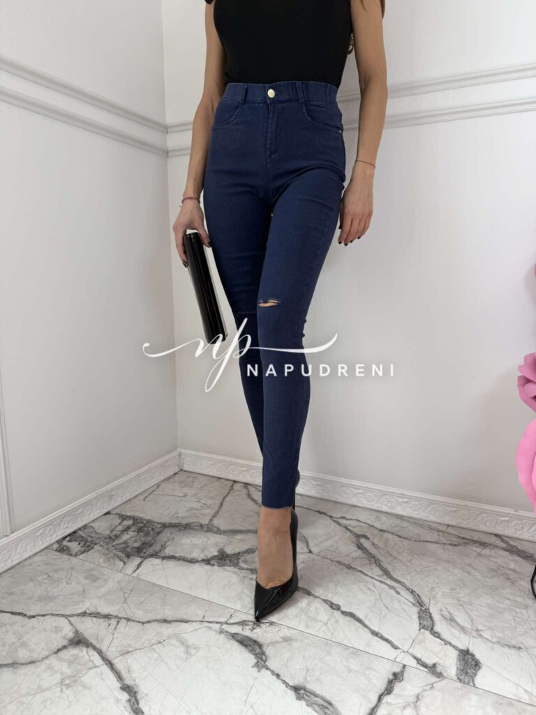 Тренди дънки в син цвят и цепка на коляното – код 6066