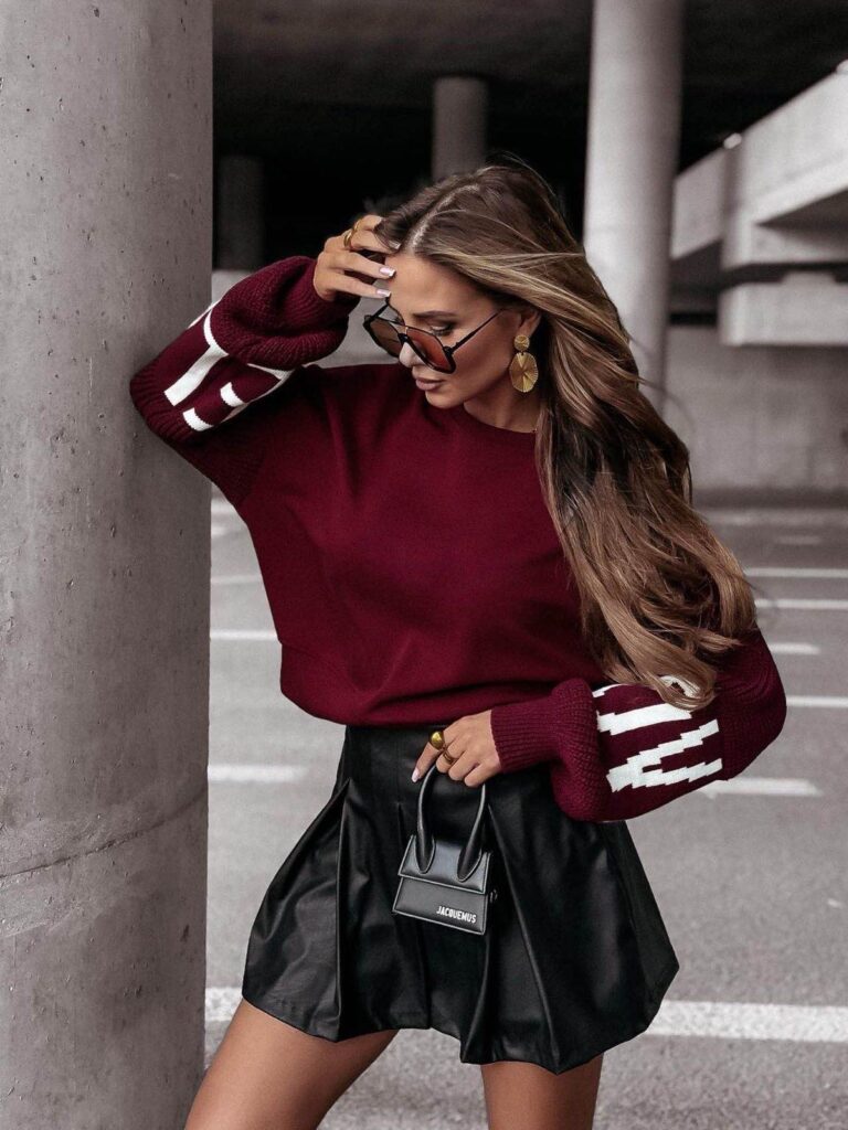 Ватирана блуза с ръкави плетиво в червен цвят – код 8308