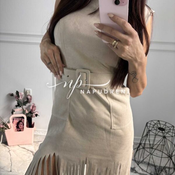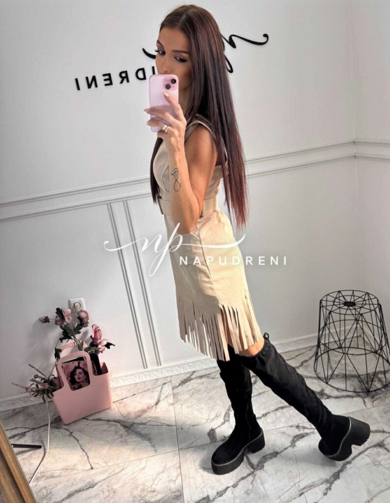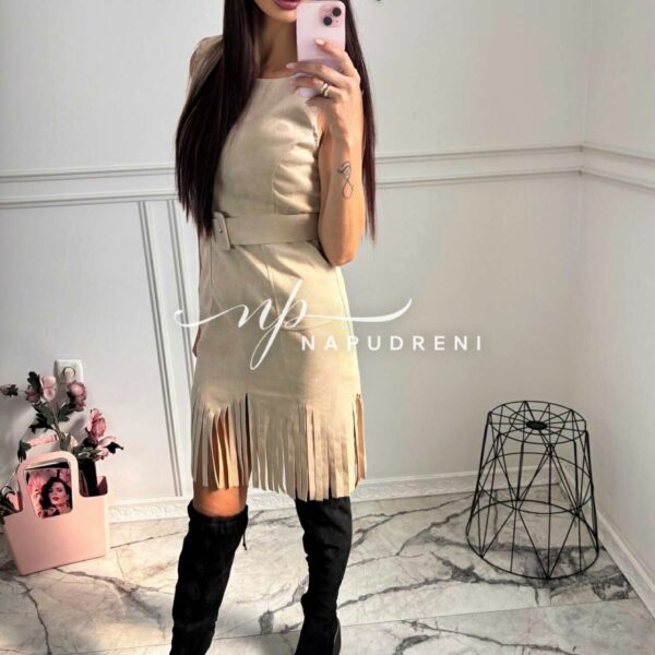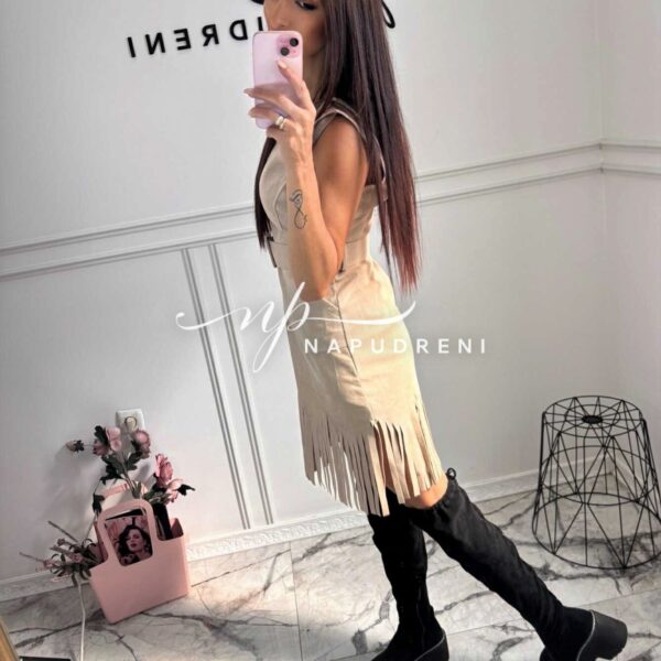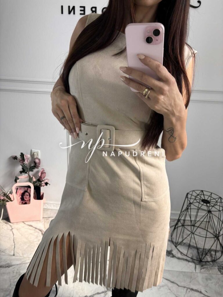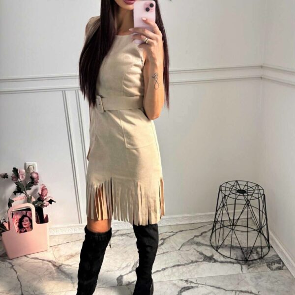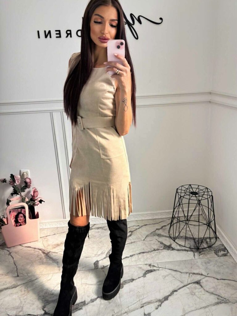 Велурена рокля с ресни в бежов цвят – код BL9902