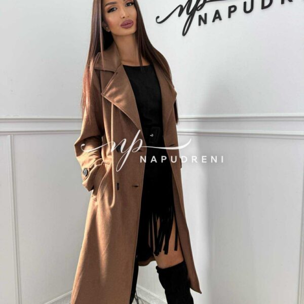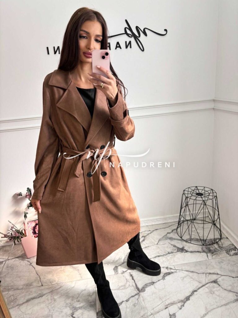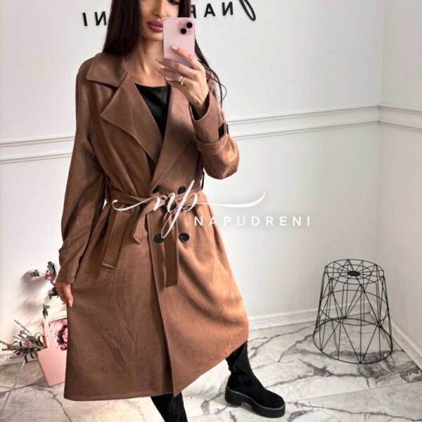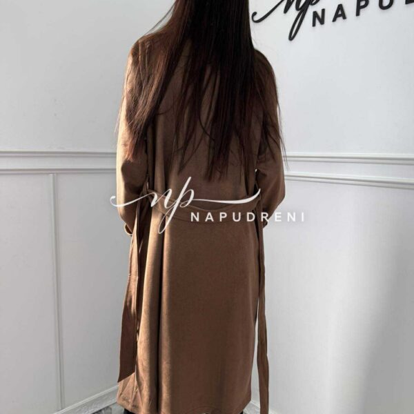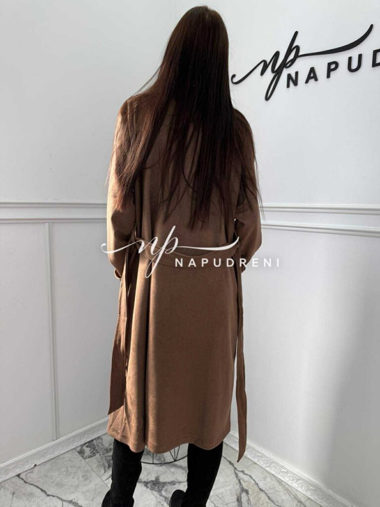 Велурено палто с колан в кафяв цвят – код Bi9914